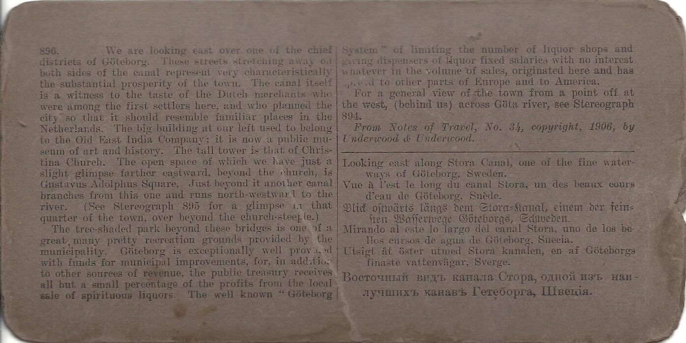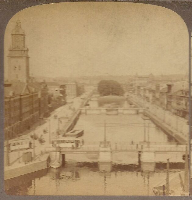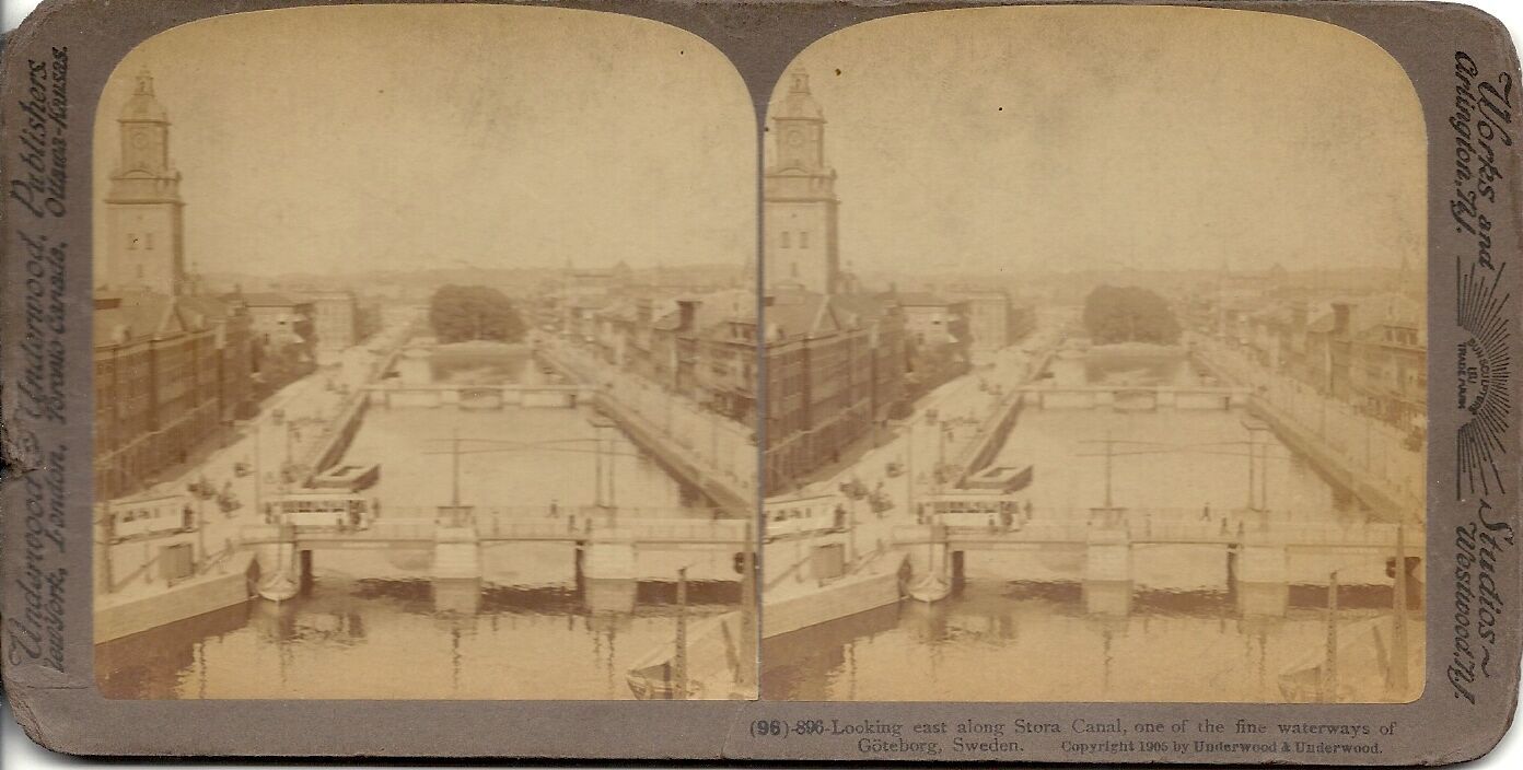 Stereoview Slide Looking East along Stora Canal, Sweden 1905