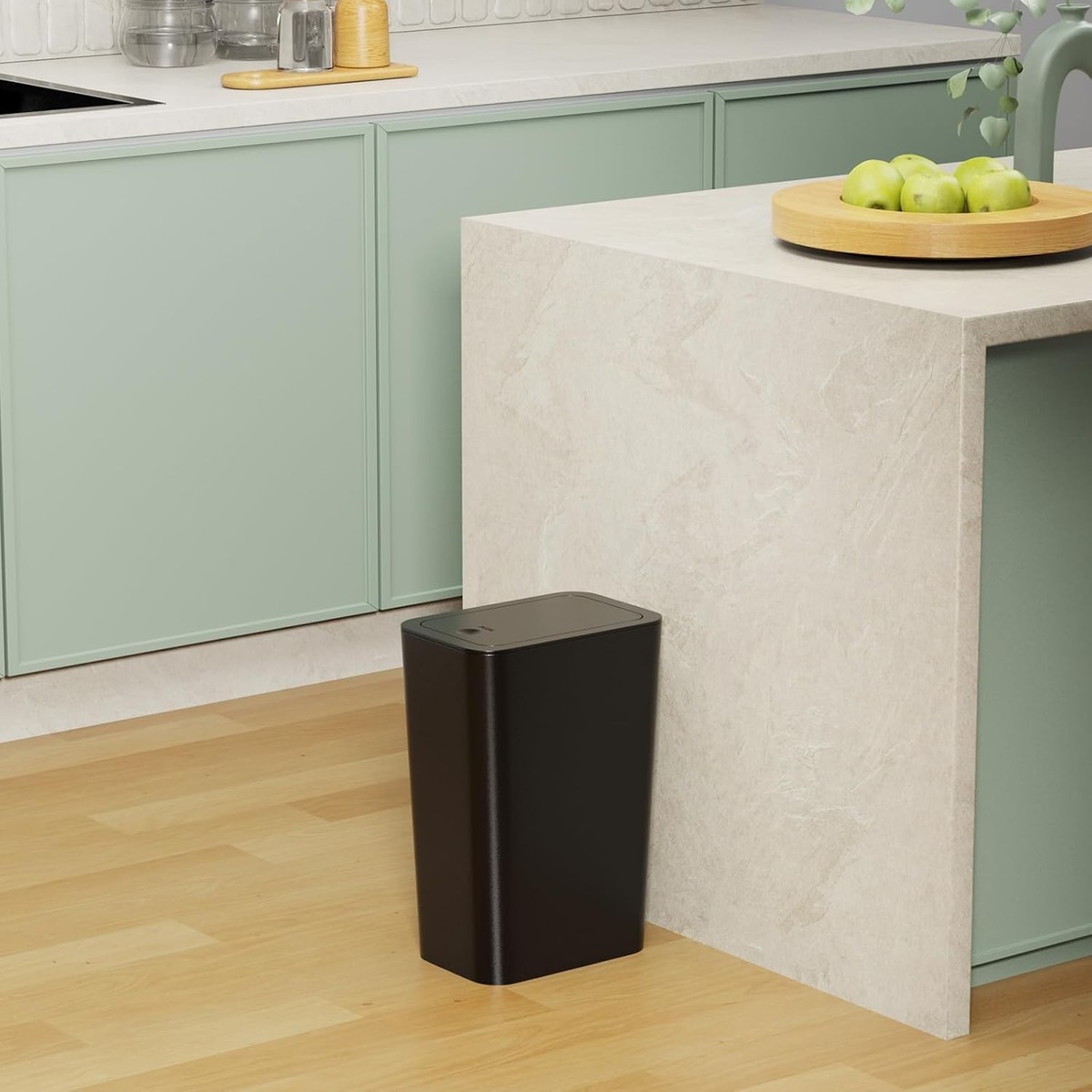 Sleek 3 Pack Black Trash Can Set with Odor Seal Lid - Perfect for Tight Spaces