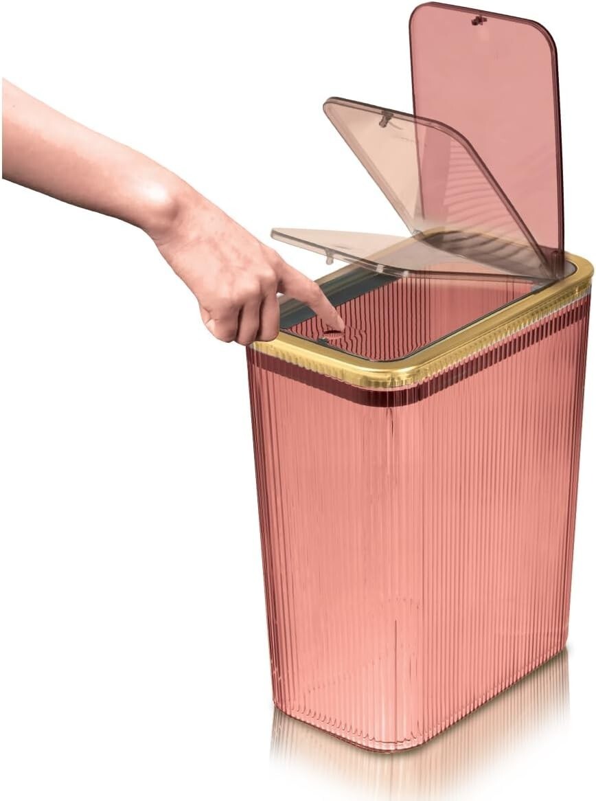 Elevate your space with our stylish and functional 2.6 Gallon Slim Trash Can. Perfectly designed for bedrooms, bathrooms, and any tight space, this blush-colored waste basket combines beauty with practicality.