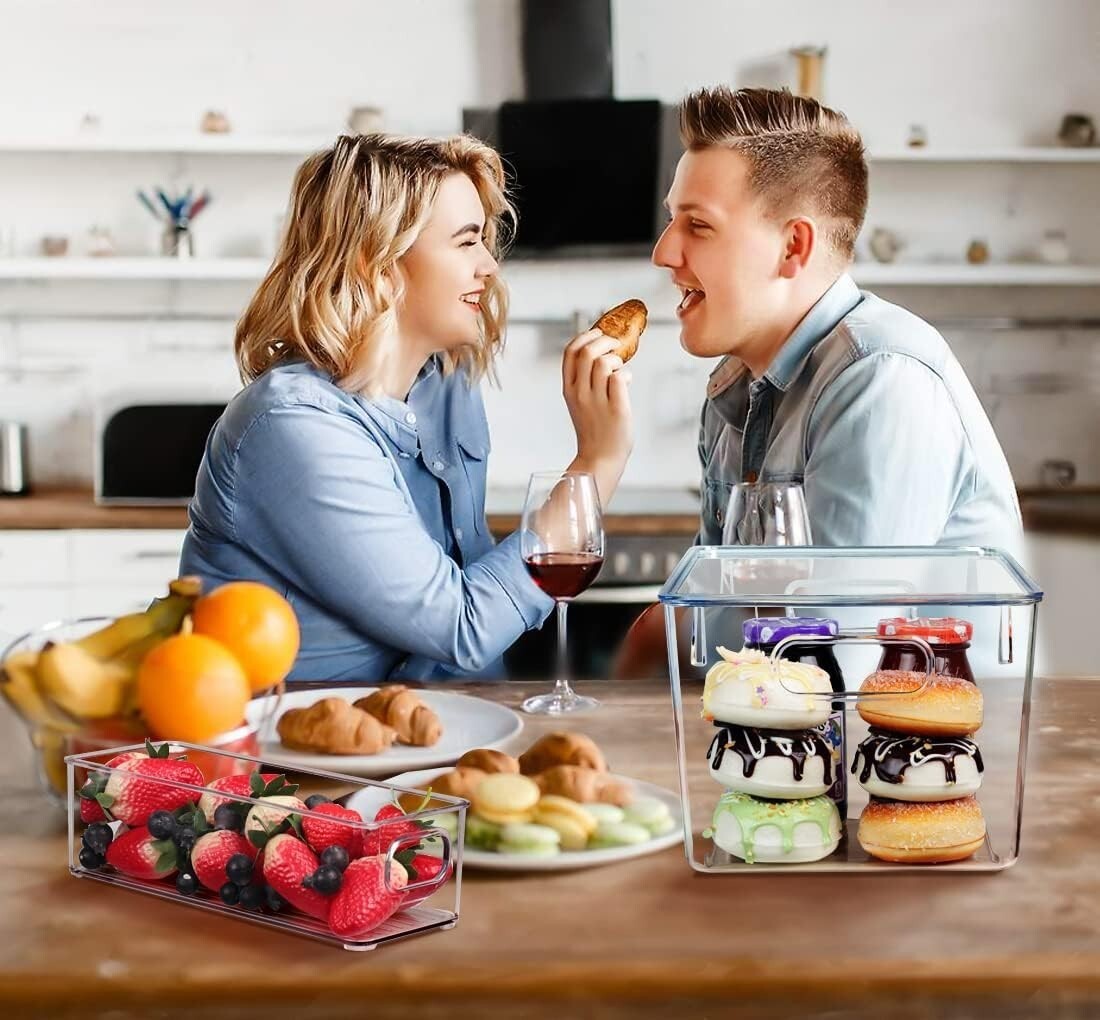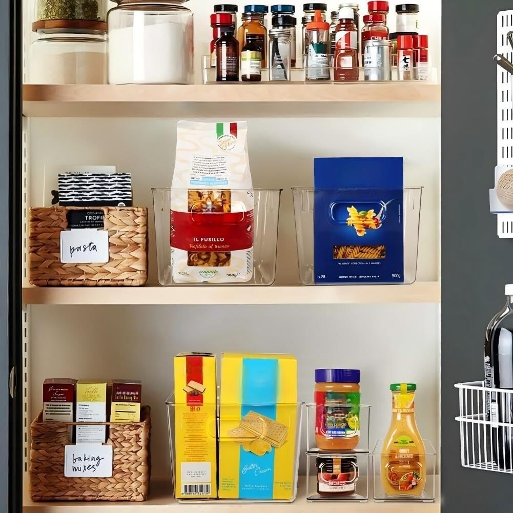 Transform your cluttered pantry and cabinets into a beautifully organized haven with our Set of Clear Plastic Storage Bins. Enjoy the luxury of effortlessly locating your items at a glance?no more digging through messy drawers or cupboards!