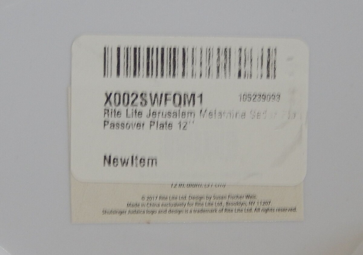 For Sale is a Rite Lite 12 inch Jerusalem Motif Passover Seder Plate. its in good Used condition as seen in the pictures provided what you see is what you will receive. Please ask Any and All Questions prior to purchasing. Fast Same or Next day shipping with Free Delivery Confirmation within the U.S. Payment Due within 7 days of purchase (if you need more time please let us know In advance) we love to combine shipping is always a Yes and Most of the time Additional Items Ship for free.