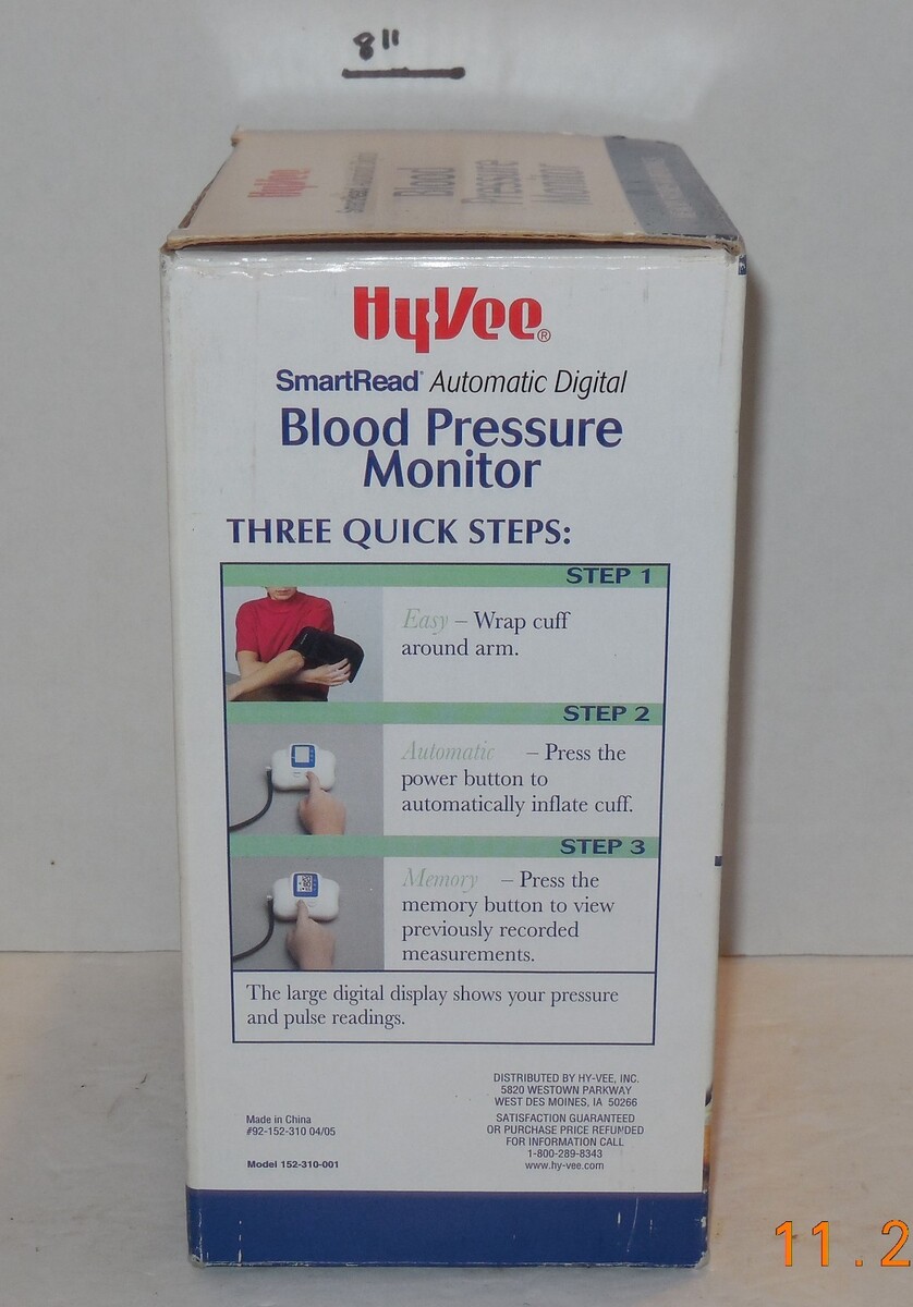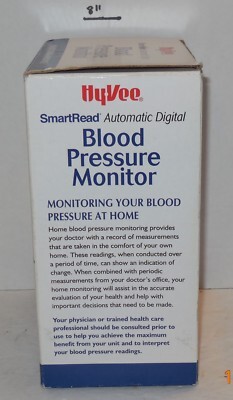 For Sale is a Hyvee Smartread Automatic Digital Blood Pressure Monitor. its in very good used condition as seen in the pictures provided what you see is what you will receive. Has been tested and works. Please ask Any and All Questions prior to purchasing. Fast Same or Next day shipping with Free Delivery Confirmation within the U.S. Payment Due within 7 days of purchase (if you need more time please let us know In advance) we love to combine shipping is always a Yes and Most of the time Additional Items Ship for free.
