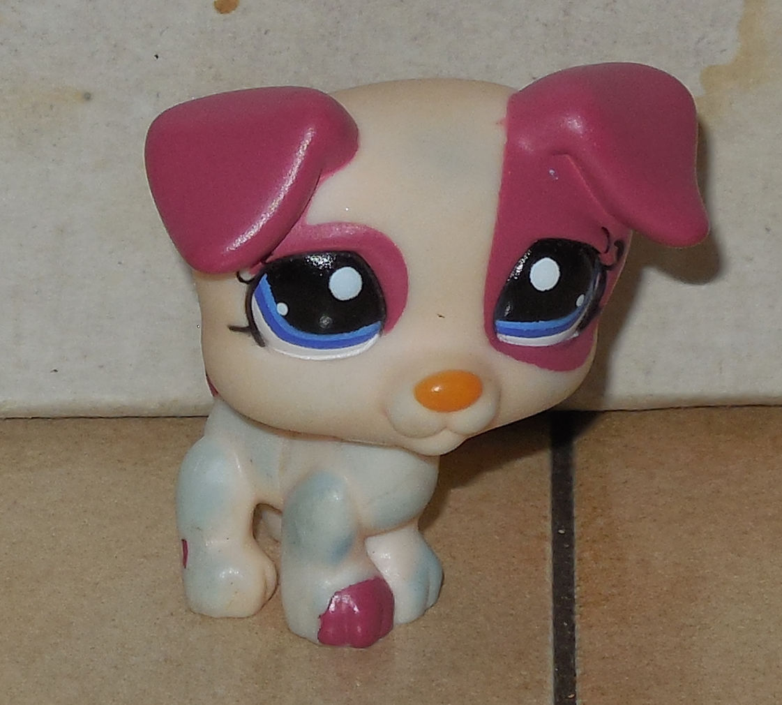 Hasbro LITTLEST PET SHOP LPS #1200 Jack Russel White Pink Blue Eyes