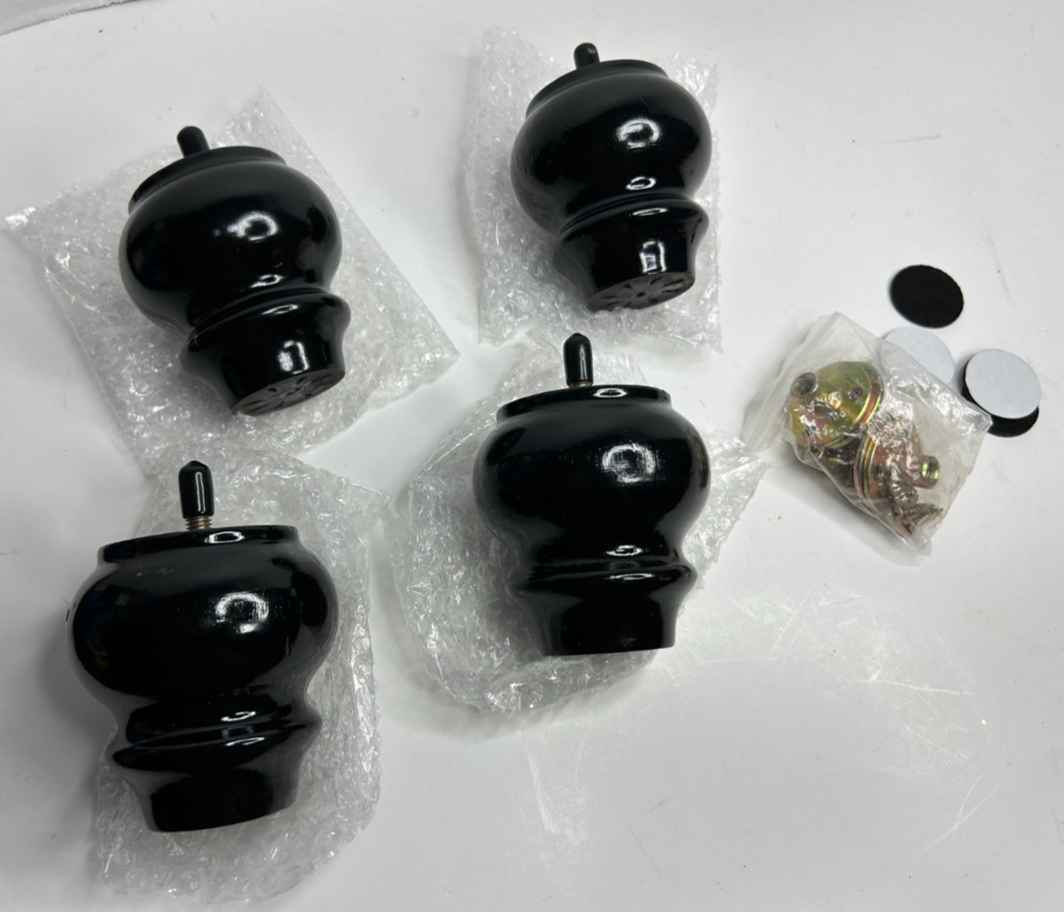 4-PACK Set of Bun Wood Furniture Legs Feet w/ Hardware, Glossy Black