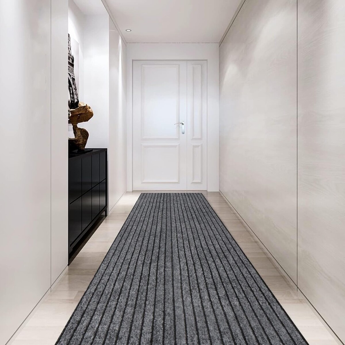Custom Size Waterproof Non-Slip Runner Rug 2FT x 6FT Gray Stripe for Safety