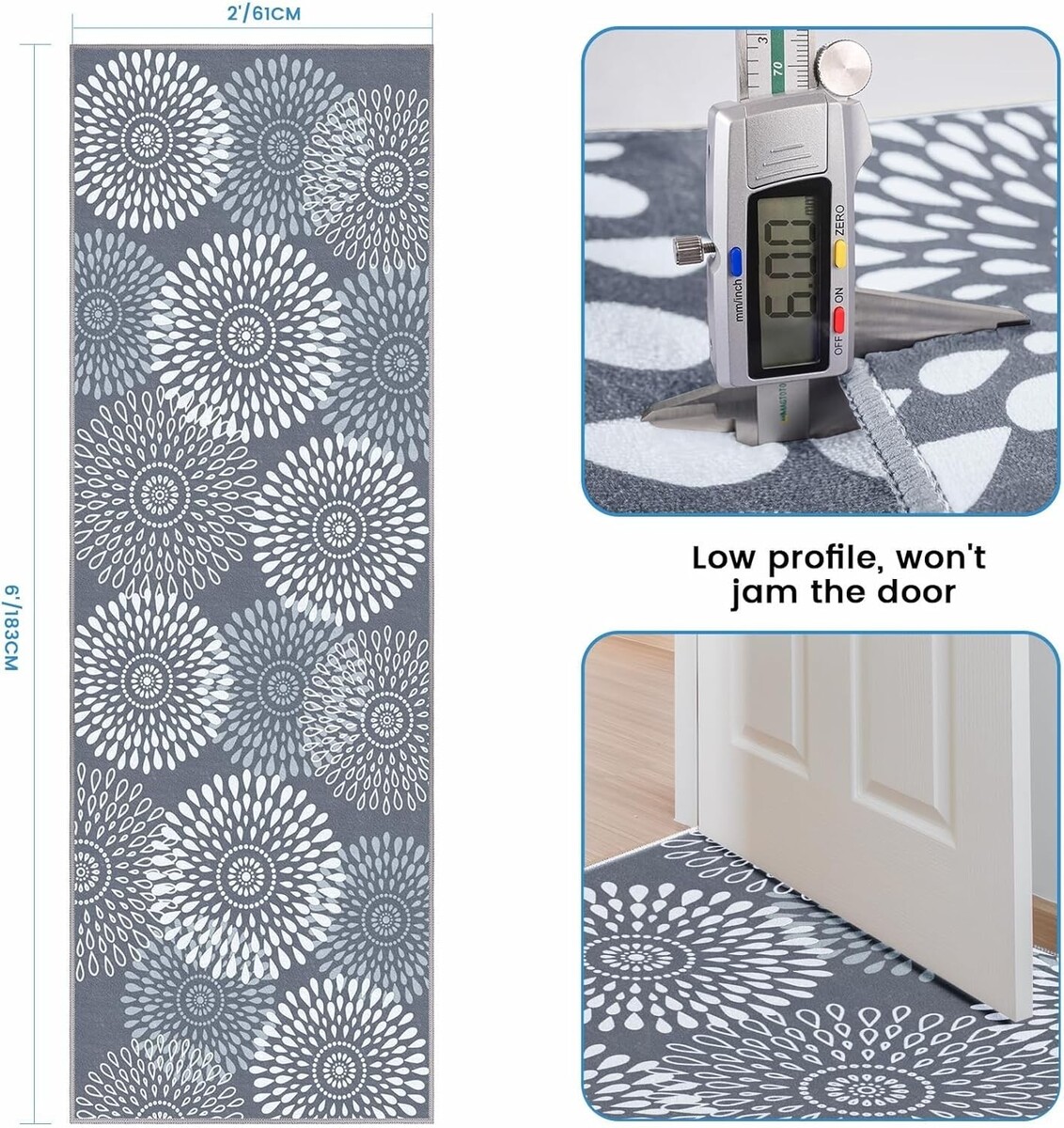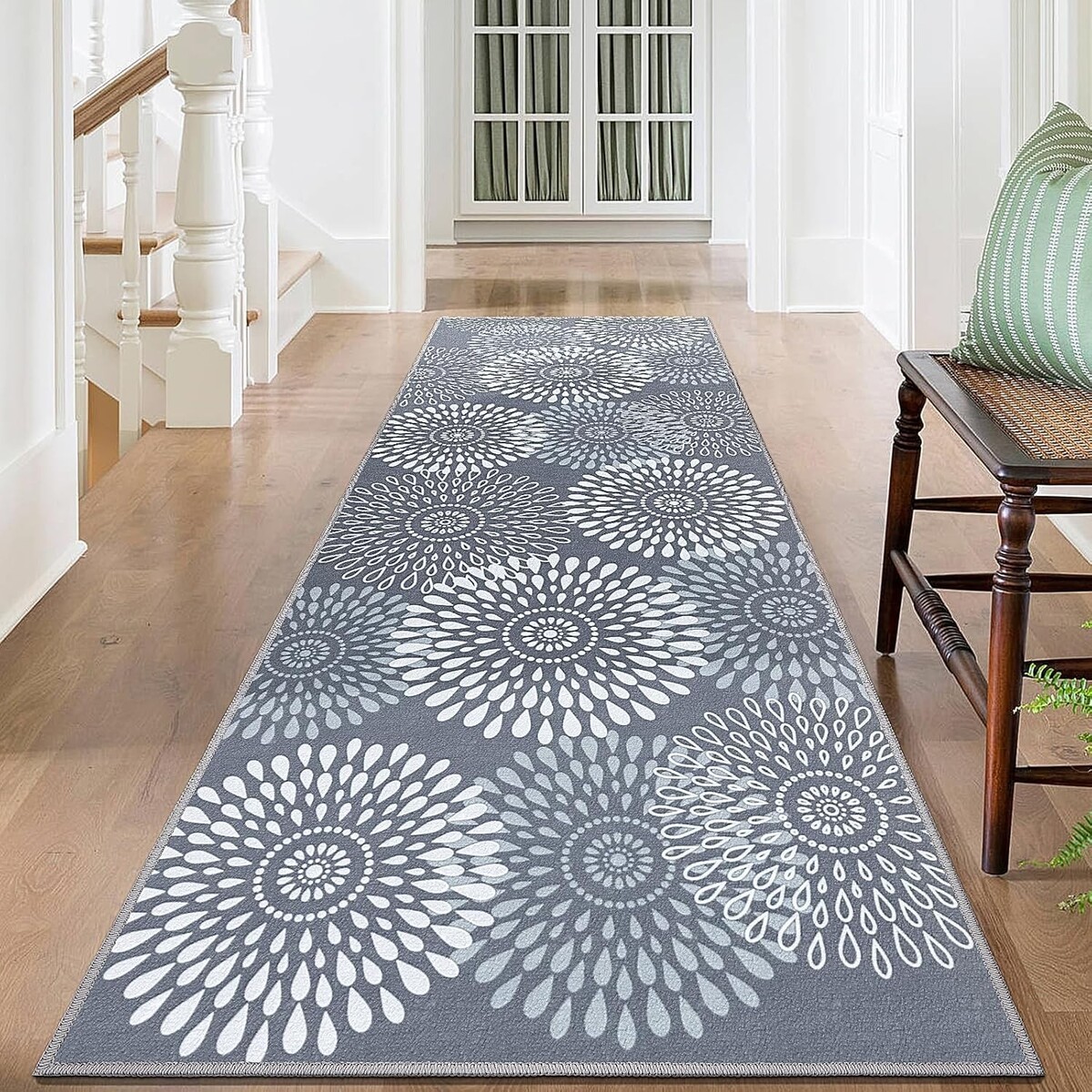2x6 ft Washable Floral Runner Rug, Non-Slip & Soft for Hallways and Kitchens