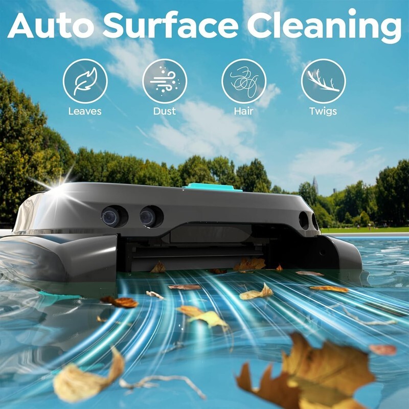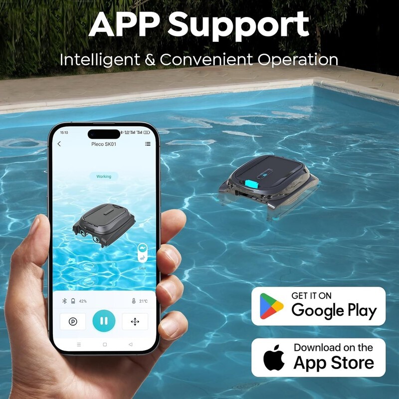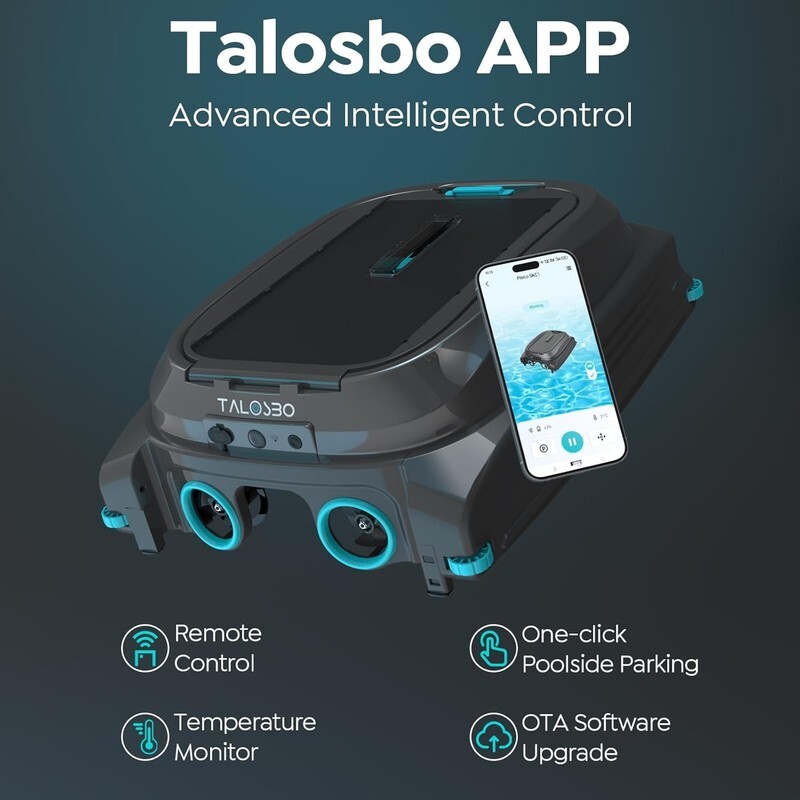 Smart APP Control: Connect via the APP to control the robot?s forward/backward movement, set spot cleaning, check real-time pool temperature, and trigger one-touch shore docking. Stay in charge of cleaning without stepping near the pool.
