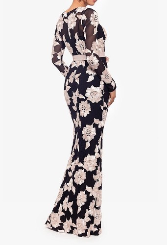 Betsy Adam A26690 Illusion Neck Sleeve Soutache Gown SZ 4 Black Champagne