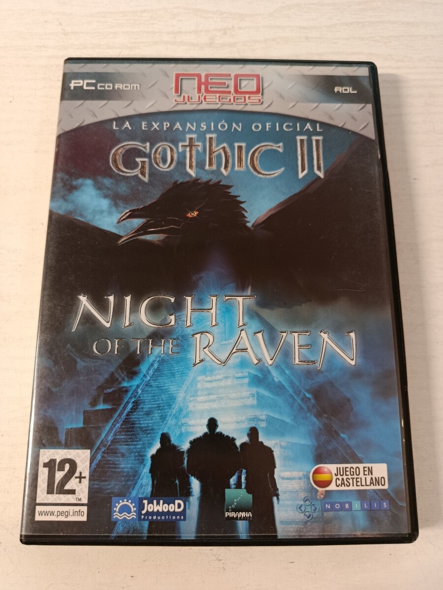 Gothic II, Night Of The Raven, official expansion, JoWooD, Piranha Bytes, PC juego , CD-ROM, Spanish voices, RPG, role-playing, fantasy adventure, physical format, Spanish edition, video game collecting, retro PC, Gothic 2 expansion.