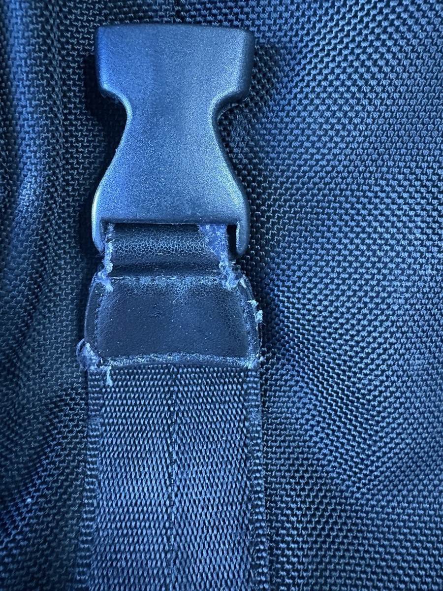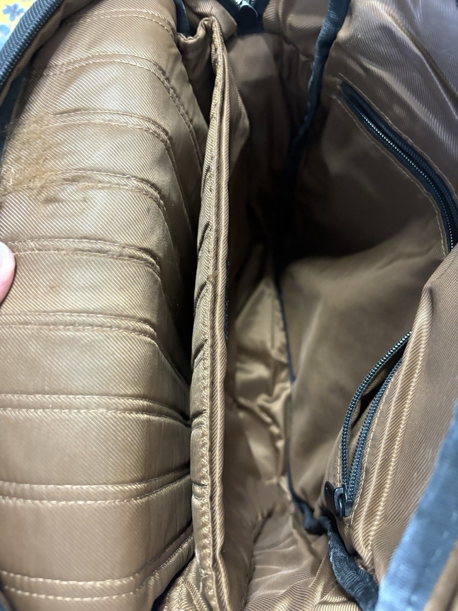 The bag is clean no smells no stains lots of visible wear on emblem and metal. Leather straps have wear marks. Time last forever.