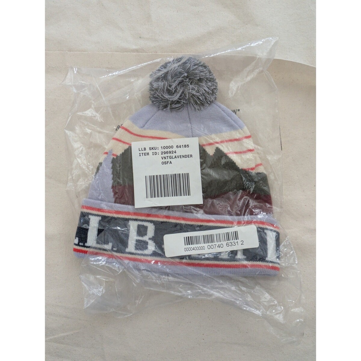 LL Bean Heritage Pom Beanie Vintage Lavanda Mountain Knit Hat 296924 OSFA NUOVO