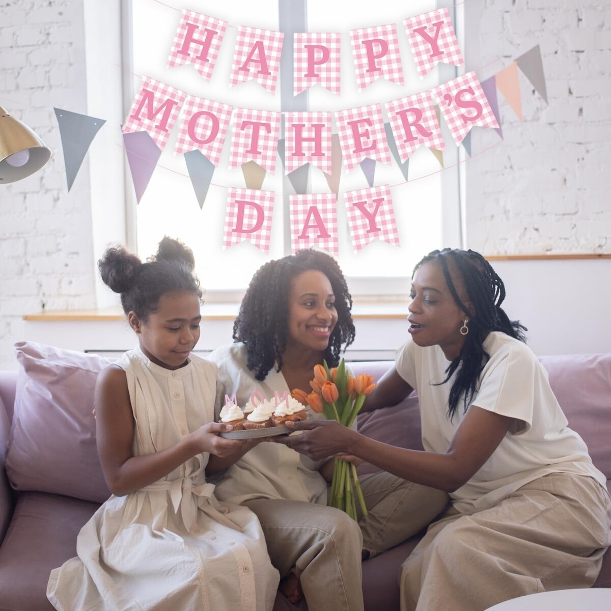Happy Mother's Day Banner Set Decoration for Mother's Day Party (Pink Tulip)