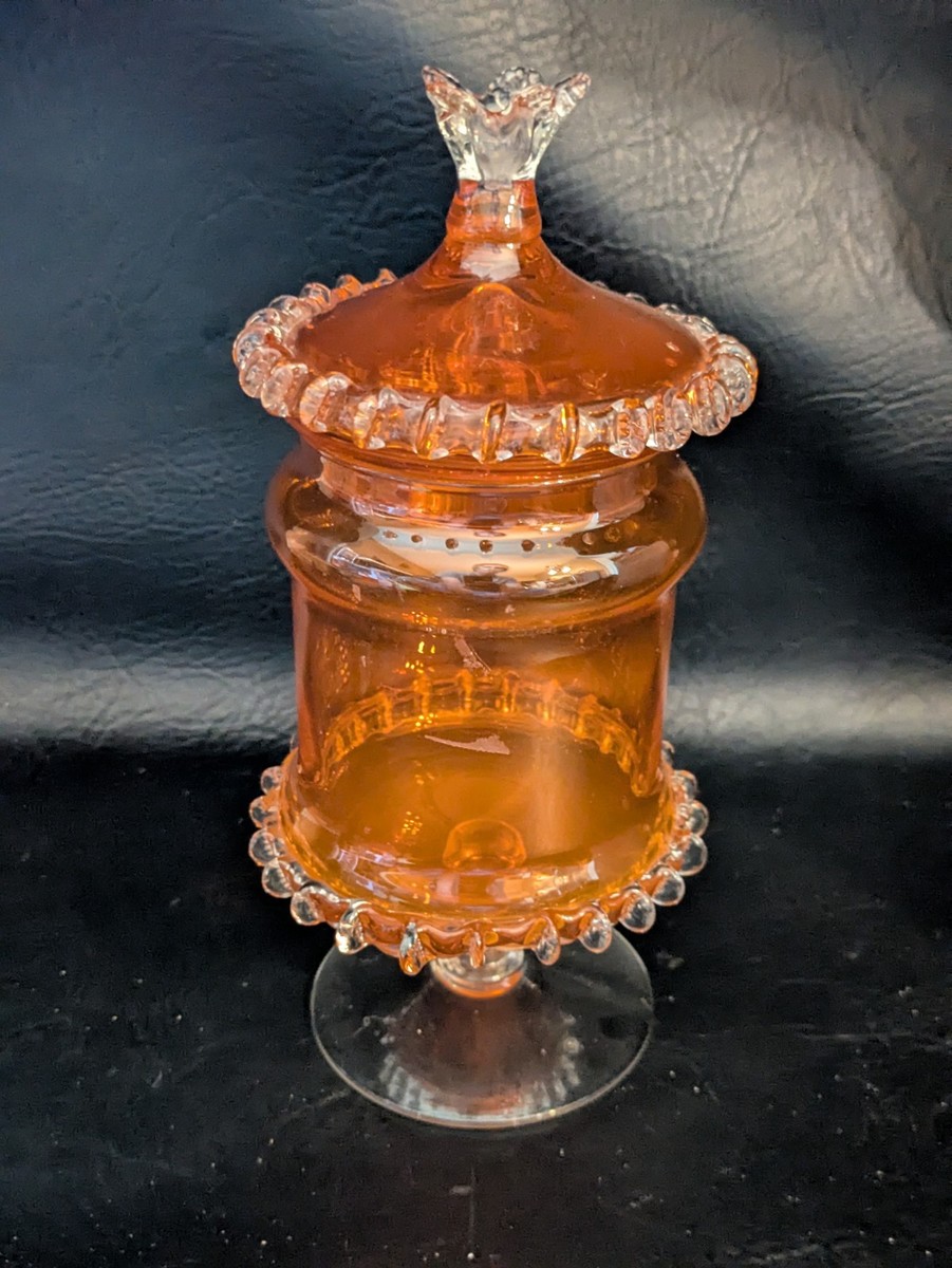 Empoli Murano Italien Art Verre à Couvercle Orange Candy Compote 10 IN Grand