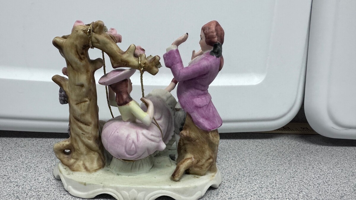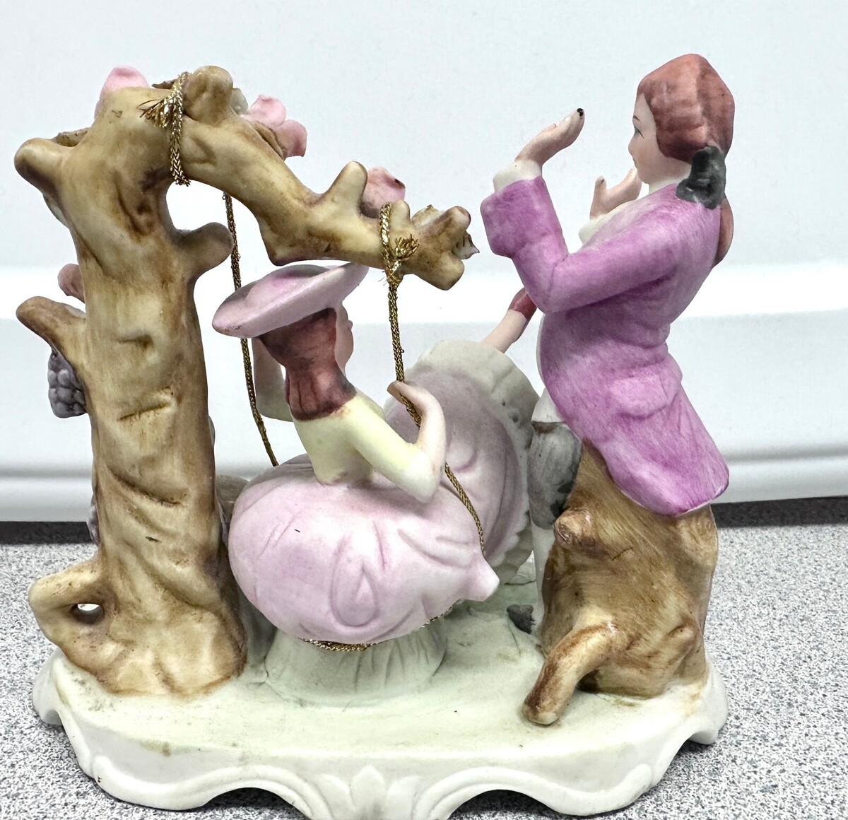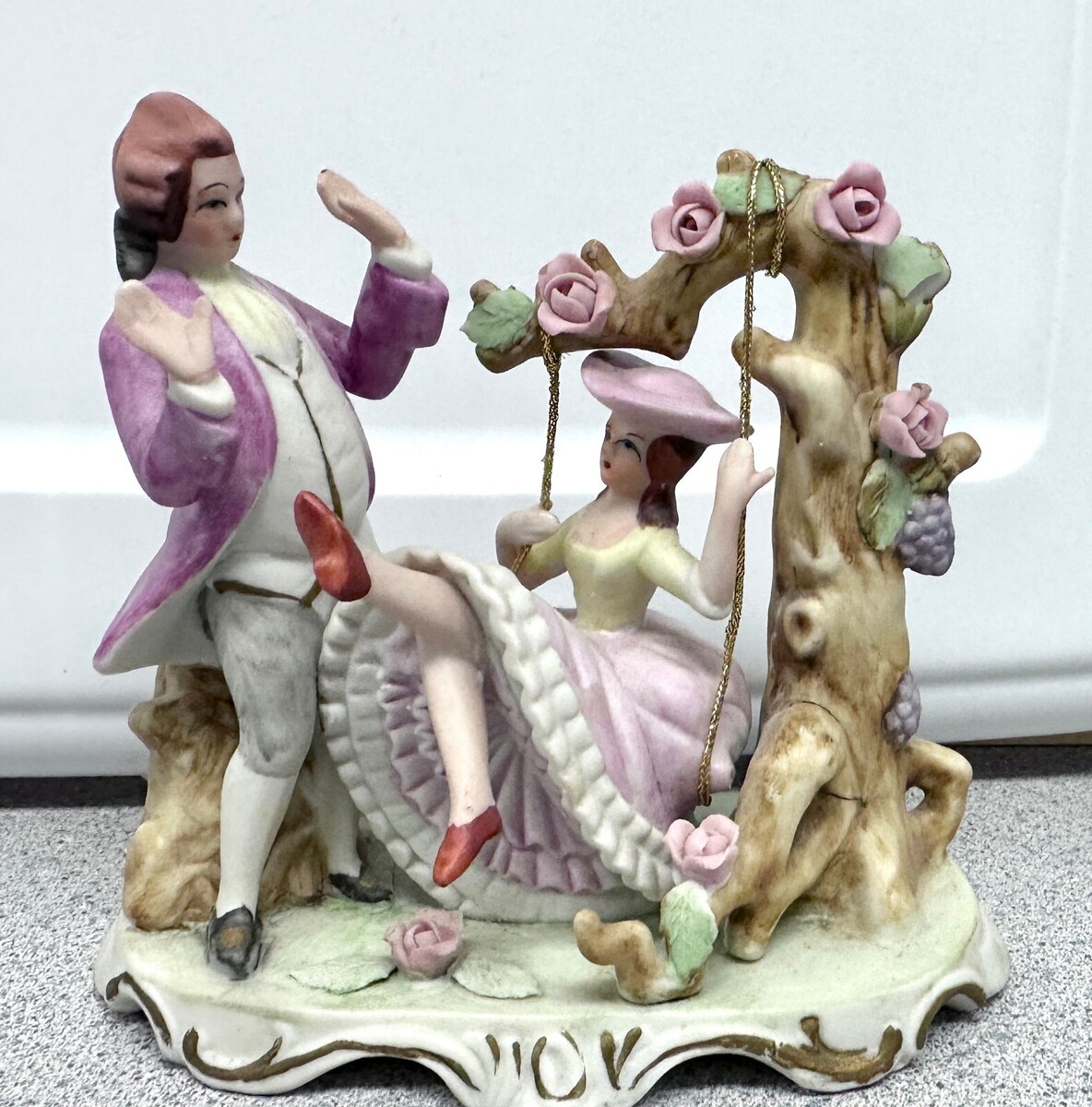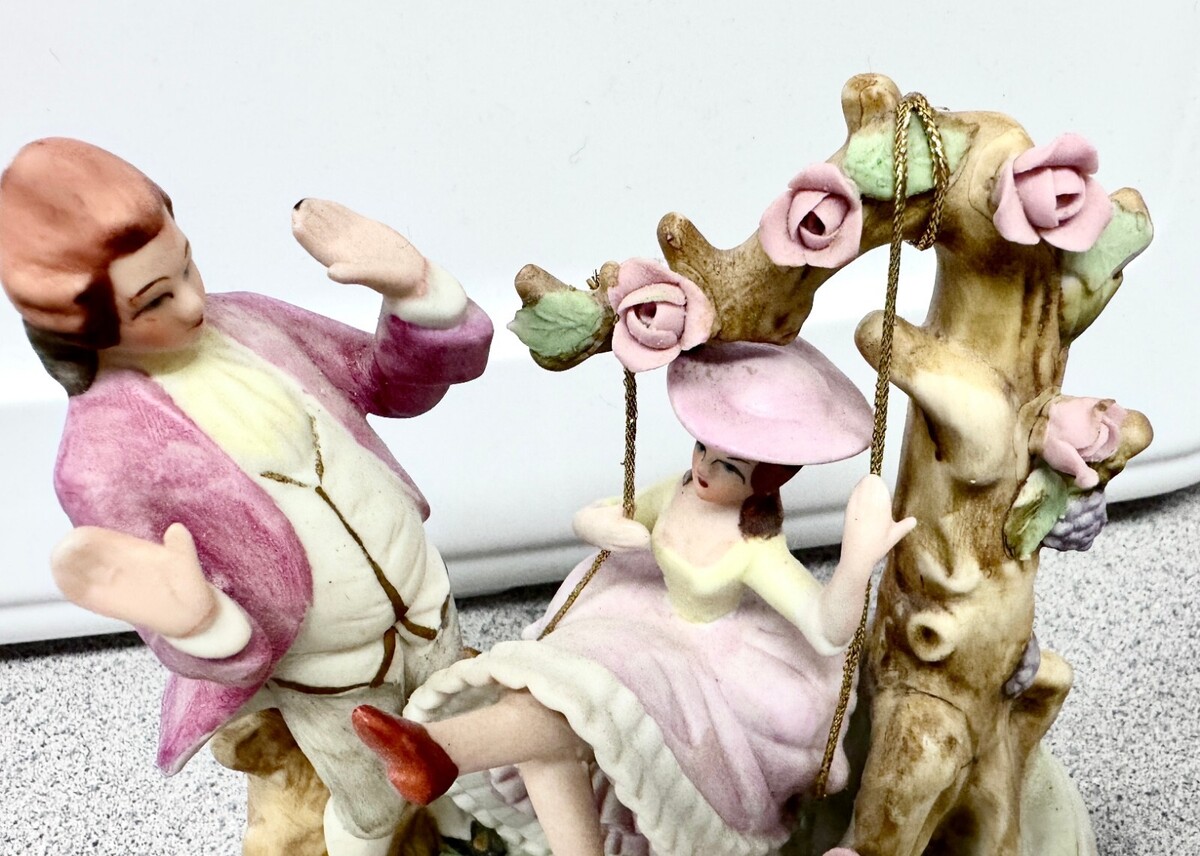 ANTIQUE DRESDEN PORCELAIN GERMANY pottery figure retro ducal Man Woman Swing