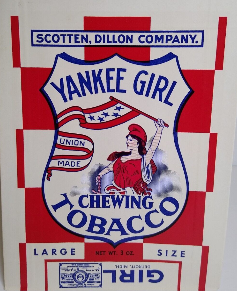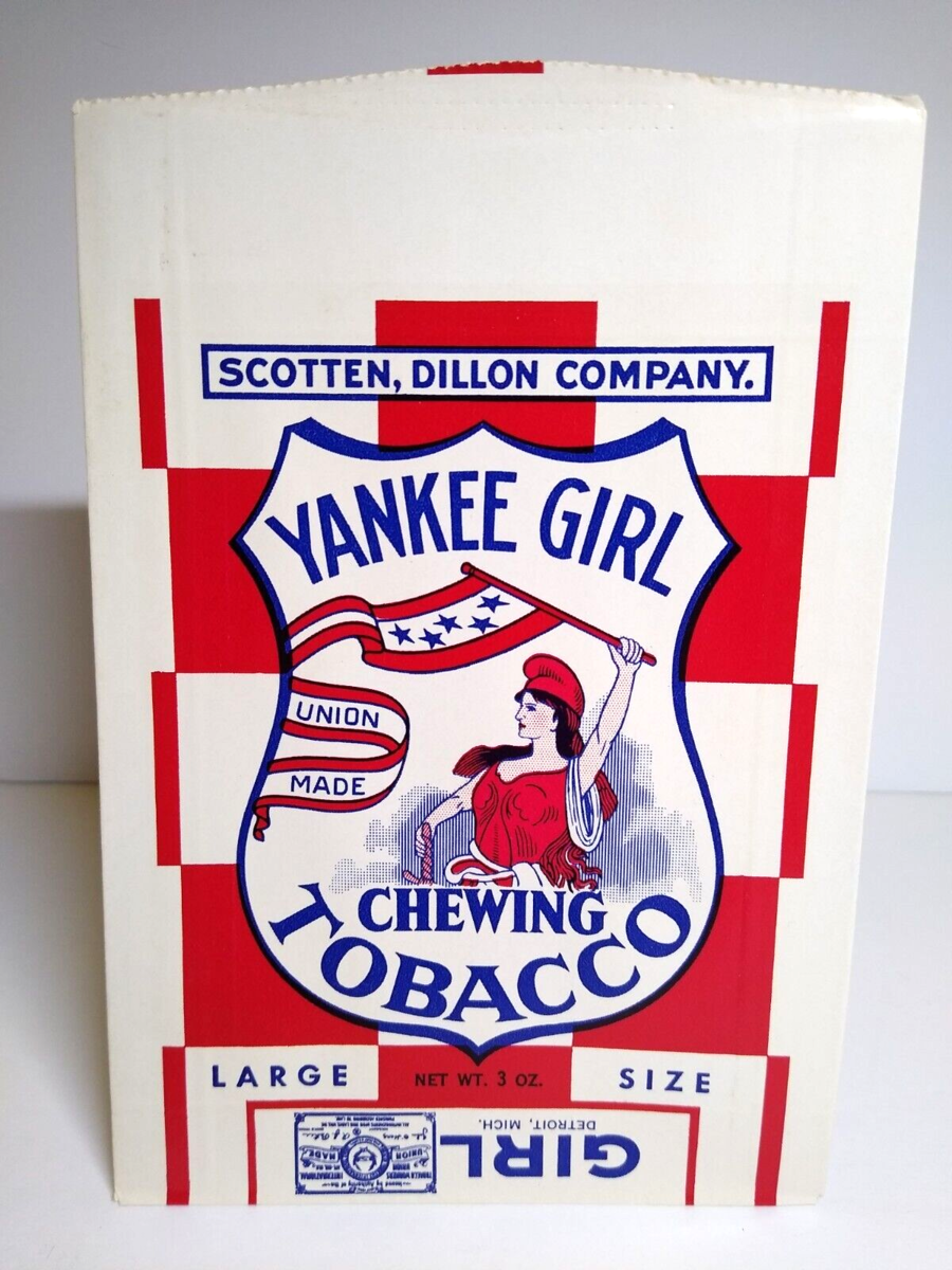 Vintage unused old stock box for Yankee Girl brand empty unused chewing tobacco 3oz size bag. Excellent condition. 7." x 4.75".