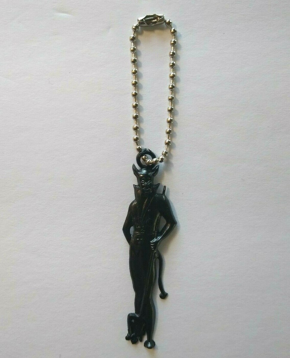 Vintage Halloween Plastic Devil Satan Keychain Gothic Cool Dead Spooky Gift Black