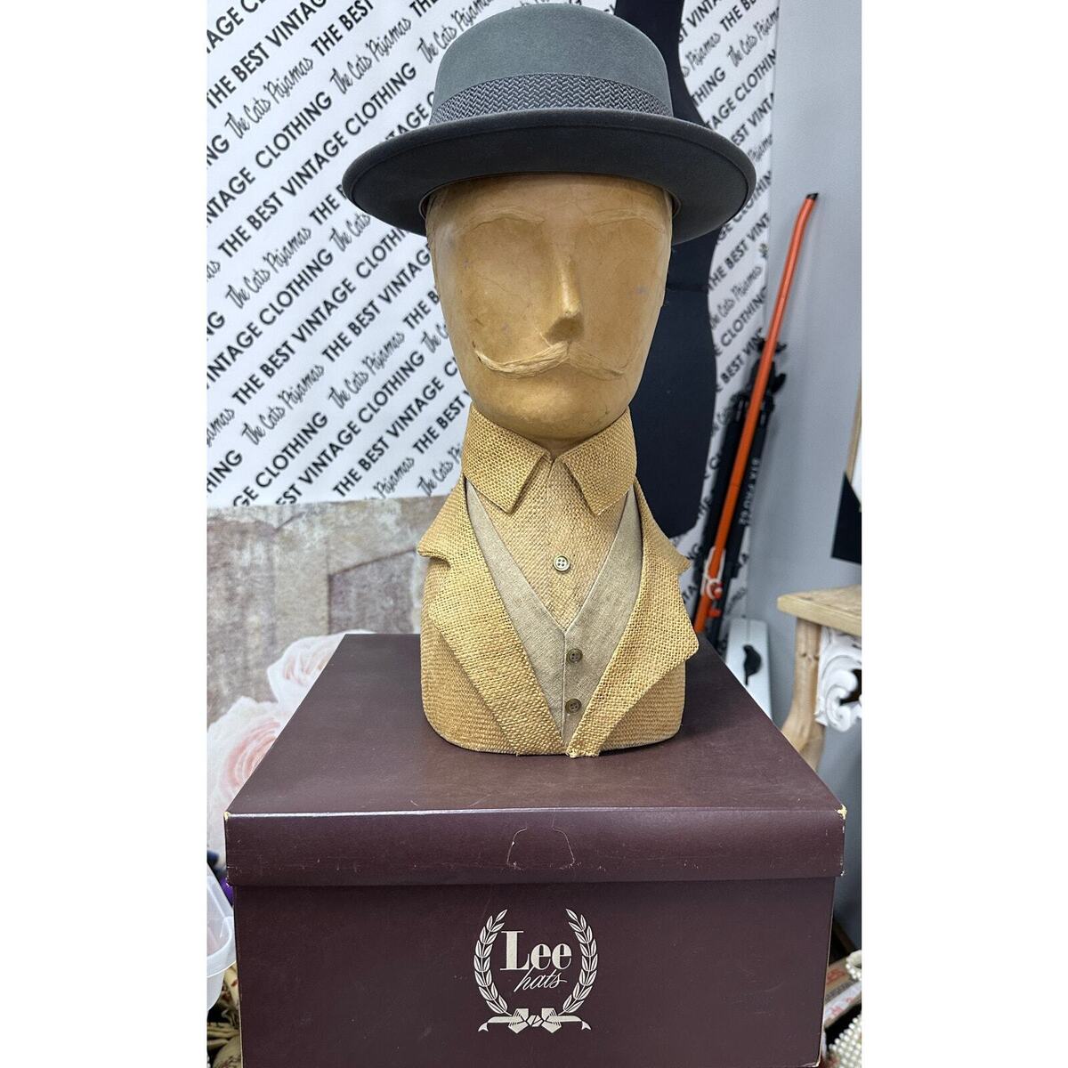Vintage Rare VTG Mens Lee Hat + Box Gray Pork Pie 1950s Sz 7 Superb condition! Leather inside hatband. Marked size 7. Dupont water-resistant wool.