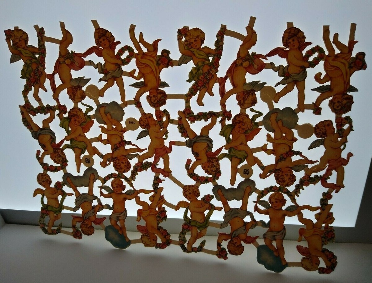Cherub Angels Vintage German Die-Cuts Original 1930's EAS 3062 Attached Set Of 24