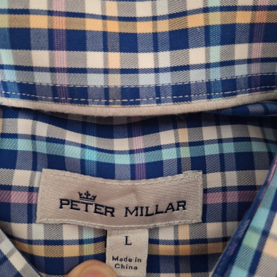 Pre-loved Partner Peter Millar Silk Cotton Check Sport Shirt Lg Coastal Prep...