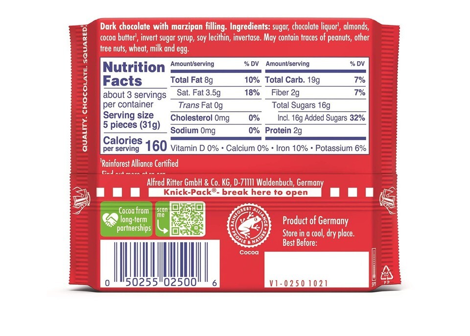 READ Ritter Sport Chocolate Bars with Nuts (Dark Chocolate with Marzipan, 3.5 Ou
