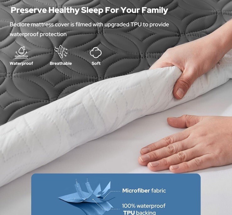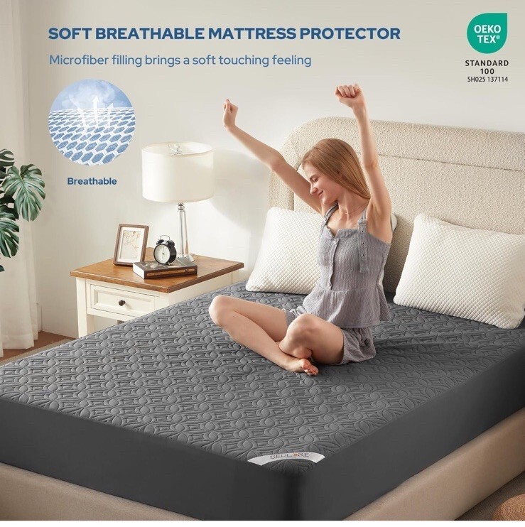 Gray Waterproof California King Mattress Protector with Deep Pocket & Support...