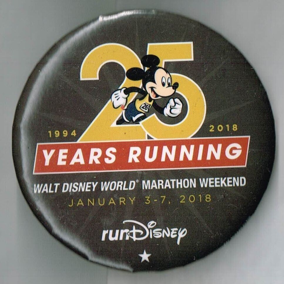 25 years running Walt Disney World Marathon Weekend Jan 3-7 2018 Pin back Button