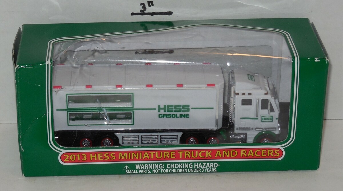 For Sale is a rare and hard to find 2013 HESS TOY Miniature Truck and Racers NIB as pictured in NIB condition. What you see is what you will receive if its not pictured its not included. would make a wonderful addition to any Toy collection. Please ask Any and All Questions prior to purchasing. Fast Same or Next day shipping with Free Delivery Confirmation within the U.S. Payment Due within 7 days of purchase (if you need more time please let us know In advance) we love to combine shipping is always a Yes and Most of the time Additional Items Ship for free.