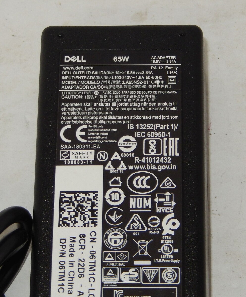 DELL Power adapter LA65NS2-01 Laptop Battery Charger 65w Input 100-240v