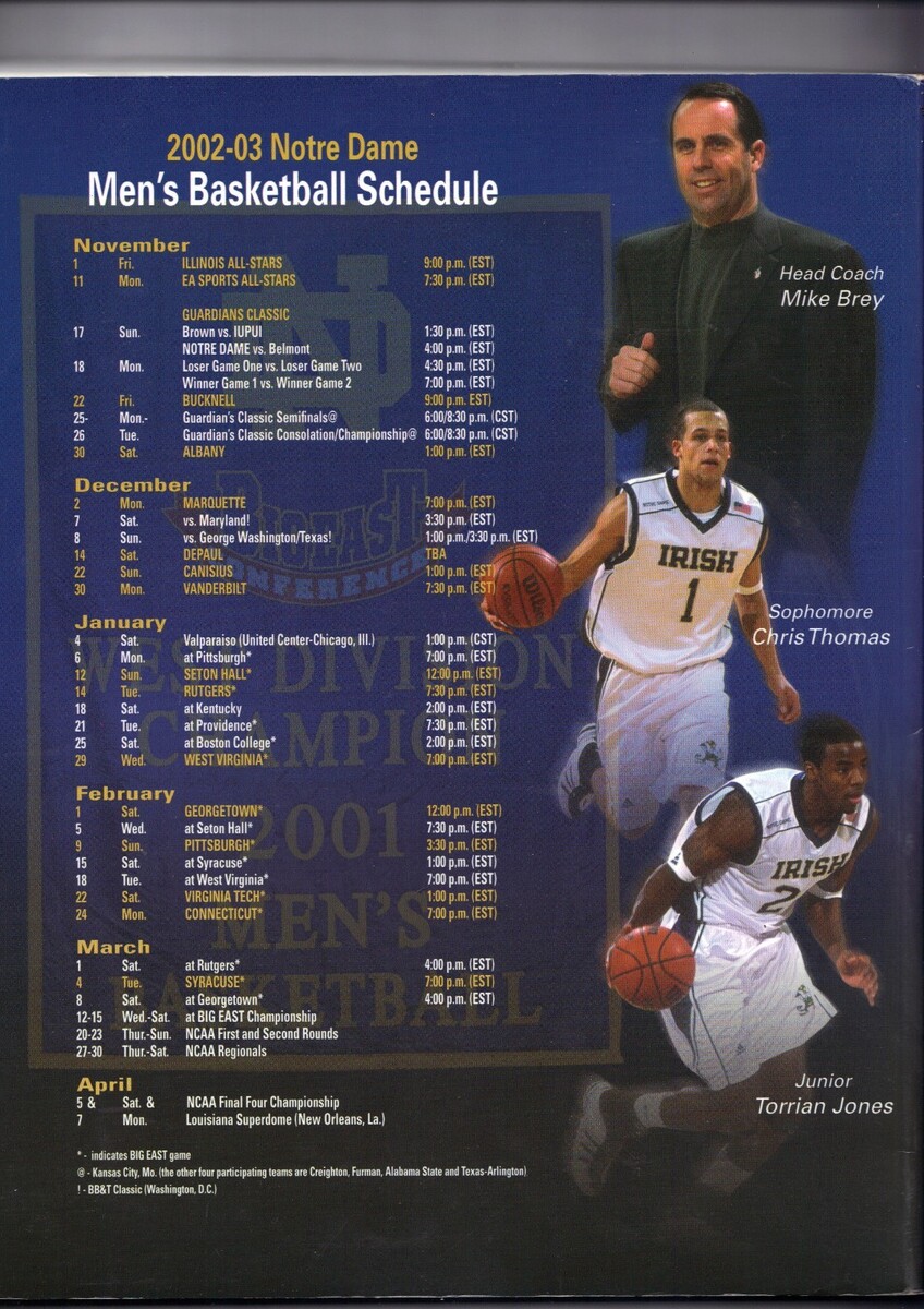 2002-03 Notre Dame Men's Basketball Media Guide NCAA