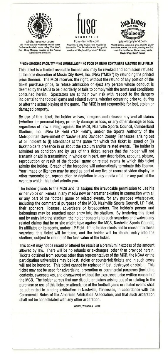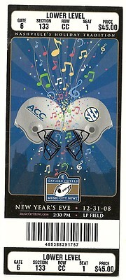 2008 Music City Bowl Full Unused Ticket and similar items