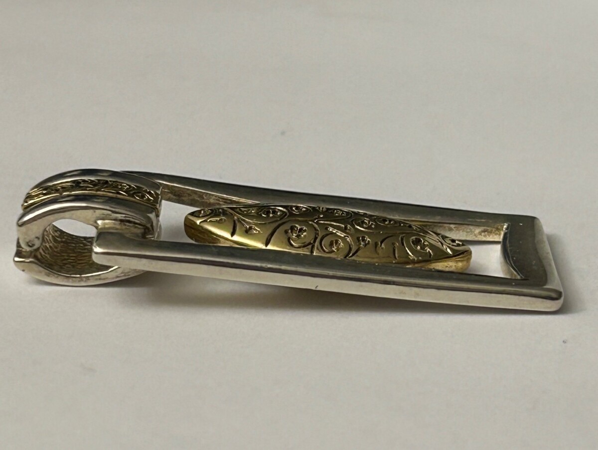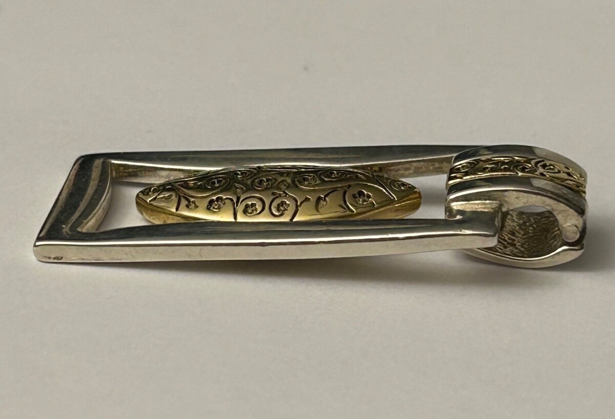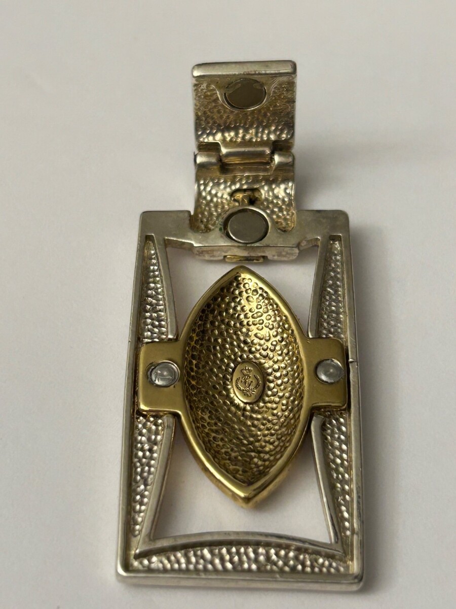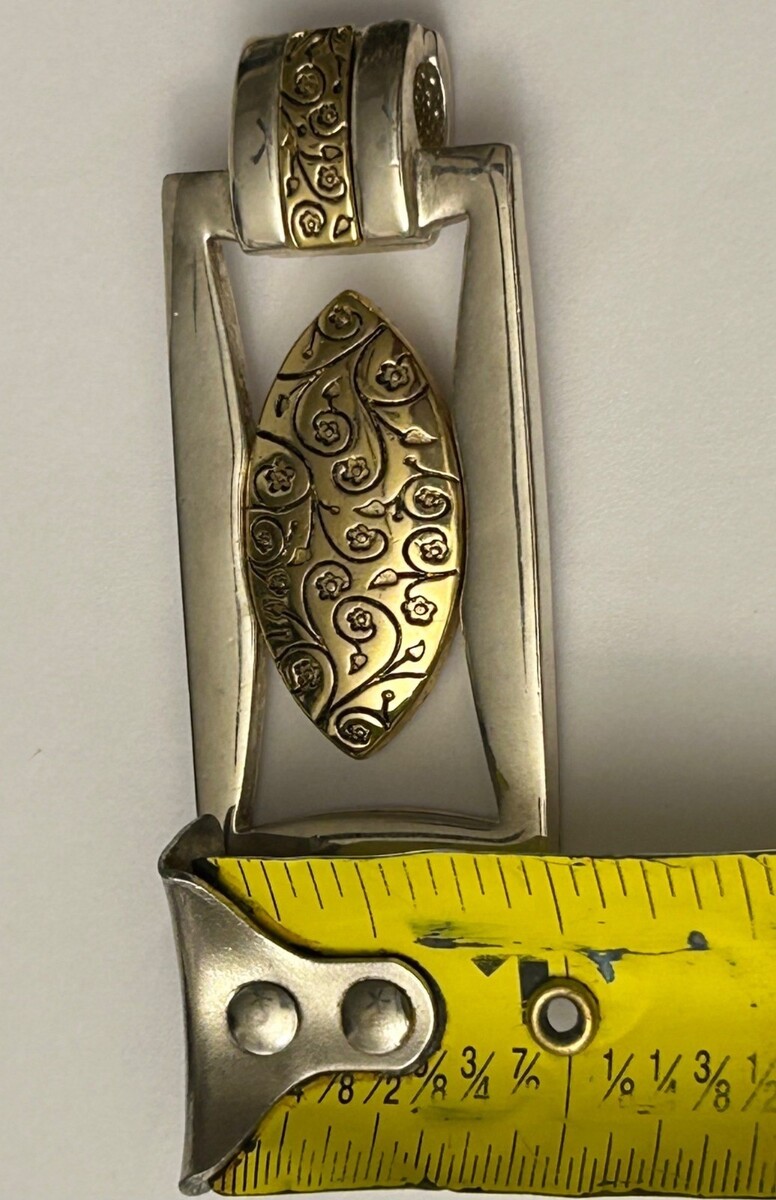 Premier Designs etched silver & gold tone Rhodium plated magnetic clasp pendant