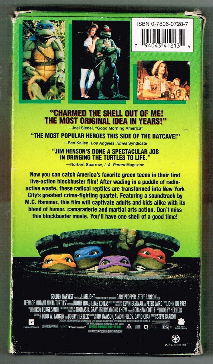 "Cowabunga!" This is the original, fan-favorite1990 live-action movie that launched the Turtles onto the big screen! Now you can catch America's favorite green teens in their first live-action blockbuster. This is the nostalgic VHS release distributed by Family Home Entertainment (FHE).