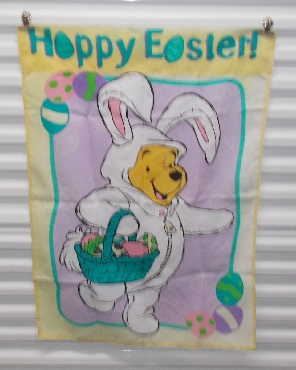 For Sale is a rare and hard to find 29" X 40" GARDEN FLAG Disney Winnie the Pooh Happy EASTER Bunny Rabbit Yellow. Its In good used Condition with Some Minor Handling wear as pictured. Please ask Any and All Questions prior to purchasing. Fast Same or Next day shipping with Free Delivery Confirmation within the U.S. Payment Due within 7 days of purchase (if you need more time please let us know In advance) we love to combine shipping is always a Yes and Most of the time Additional Items Ship for free.