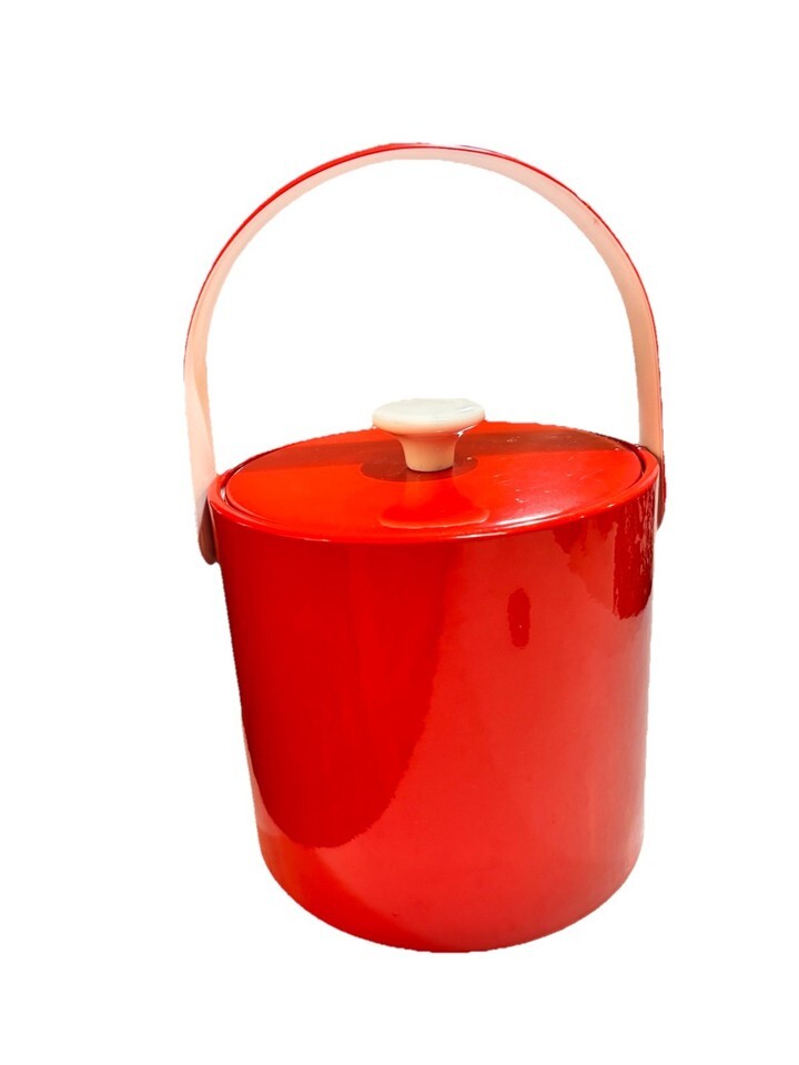 50's Vintage Royal Red White Patent Leather Ice Bucket Mid Century Modern MCM