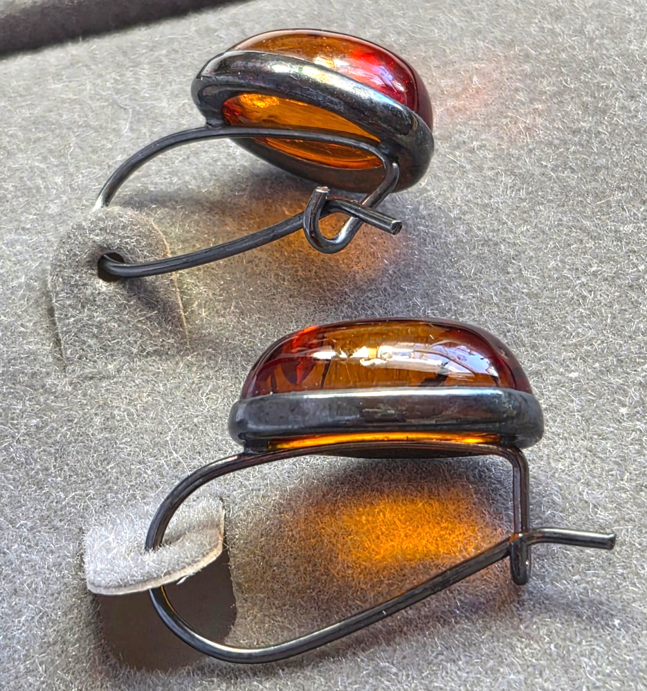 Vintage Sterling Silver 925 Amber Hook Earrings 1/2"