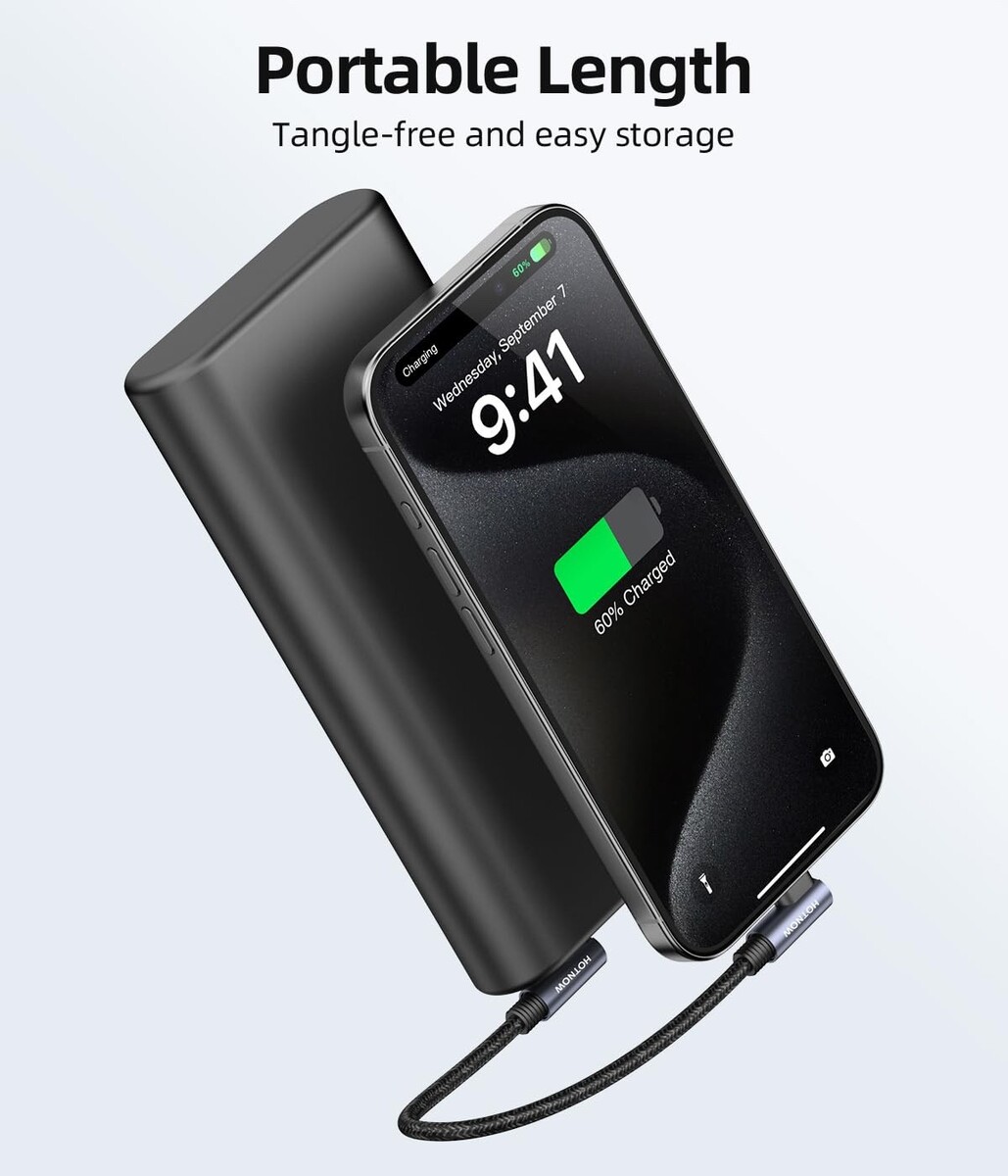 [Right Angle] Right-angle design, it is more convenient to use horizontally; Both ends are at right angles, making it suitable to charge with a Power Bank.