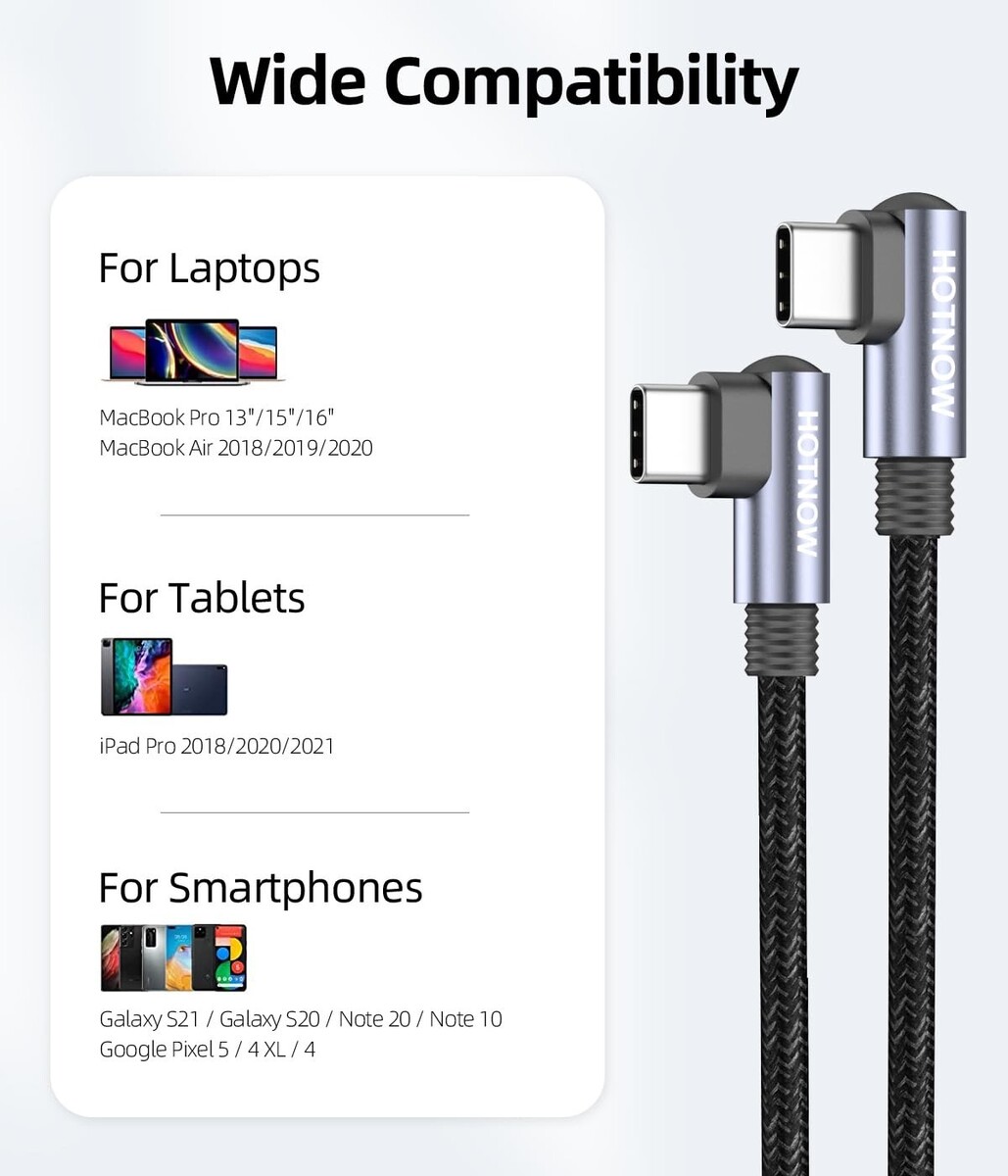 [Package included] 3 Pack 1FT Right Angle USB C TO USB C cable. Short cable for Short-distance charge, such as using power bank charge, for USB Charging hub. Easy to carry, wouldn't take up much space.