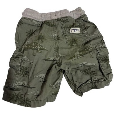 OshKosh Bgosh Cargo Shorts Boys 18M Olive Green Dinosaur Palm Tree Outdoor Sport