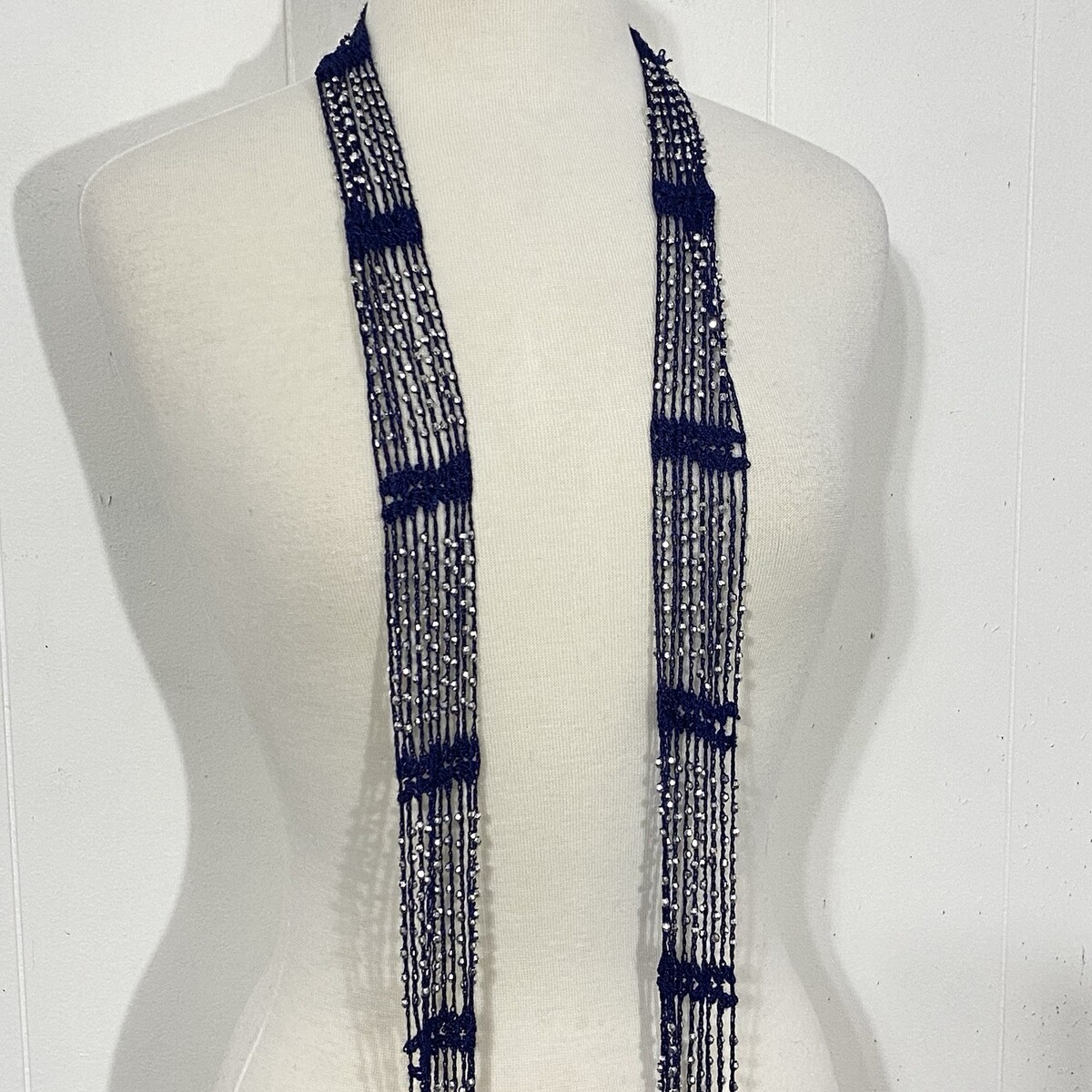 VTG y2k Ladder Scarf or Belt BLUE Silver Beaded 80" Length