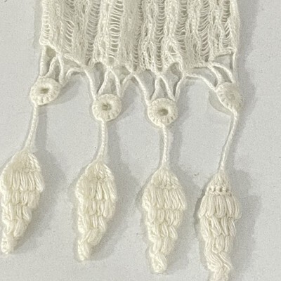 PERUVIAN Peru IVORY Alpaca WOVEN Knitted Scarf 74x7 Open Weave TASSLE