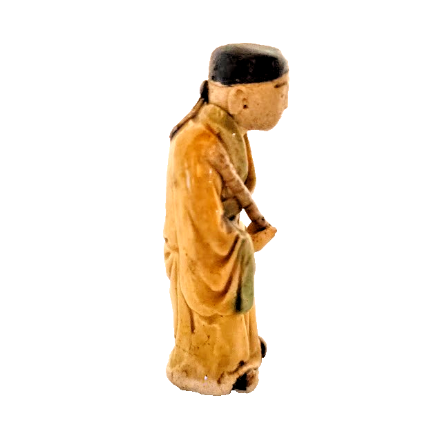 Antique Chinese Mudman 2 Inch Yellow Robe Flute Glazed Body CHINA c. 1890-1919