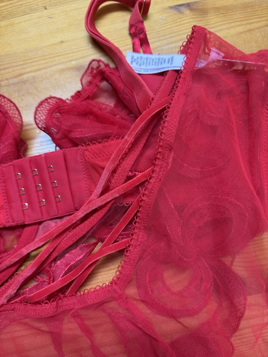 The Victoria's Secret Dream Angels Push Up Bra Thong Set in size 40D features a floral pattern with red lace material and underwired support. The set includes a bra with a hook eye closure, adjustable straps, and back closure. It also boasts rhinestone accents and an unlined design, perfect for adding a touch of angelic glamour to your lingerie collection. Designed by Victoria's Secret, this set is a stylish and supportive choice for women looking for a comfortable and flattering fit.