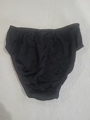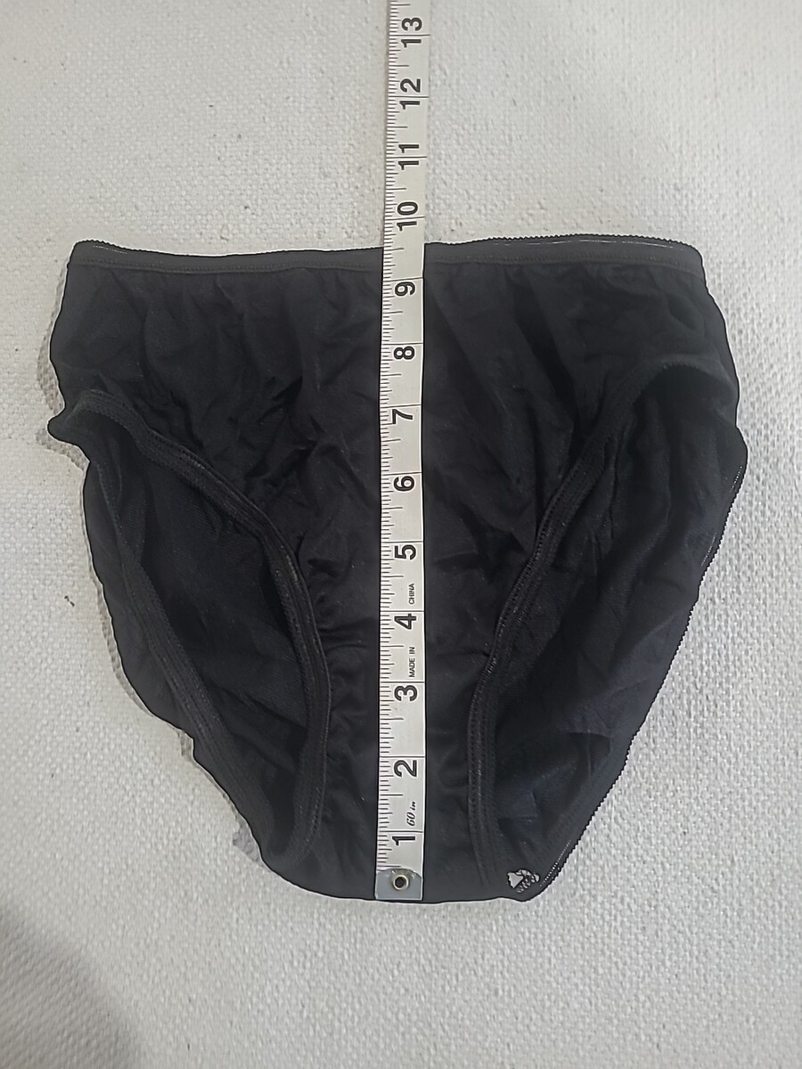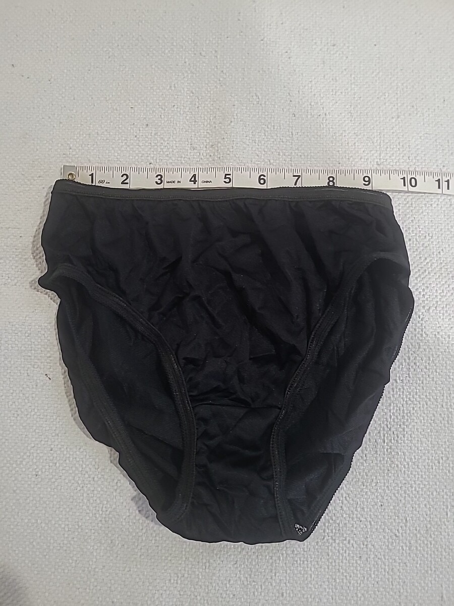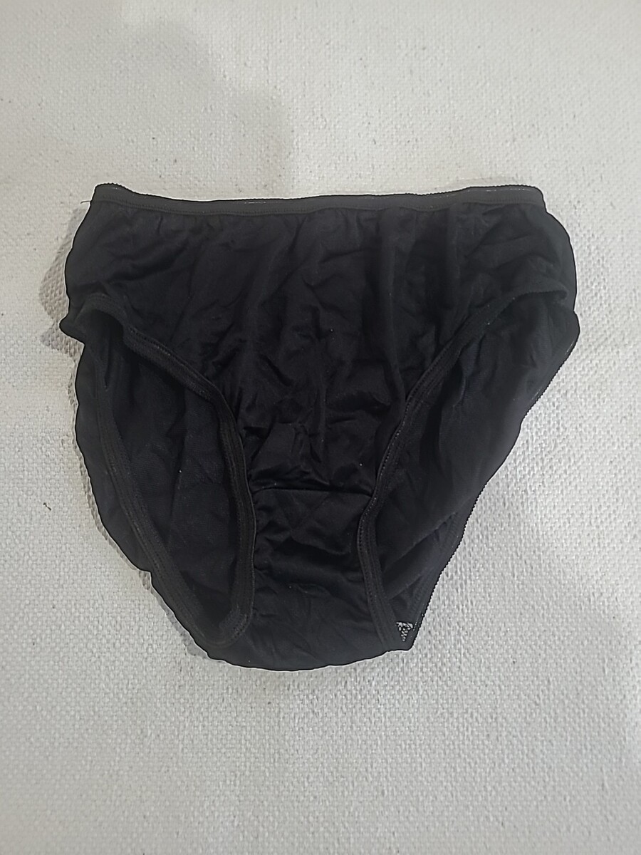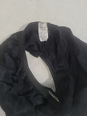 The product is a pair of vintage women's panties from J.C. Penney, dating back to the 1970s. These size large black nylon panties feature a cotton gusset for comfort and breathability. With a silky and shiny appearance, they have a hippy look and were made in the United States. The original design and material make these panties a unique and nostalgic addition to any vintage lingerie collection.