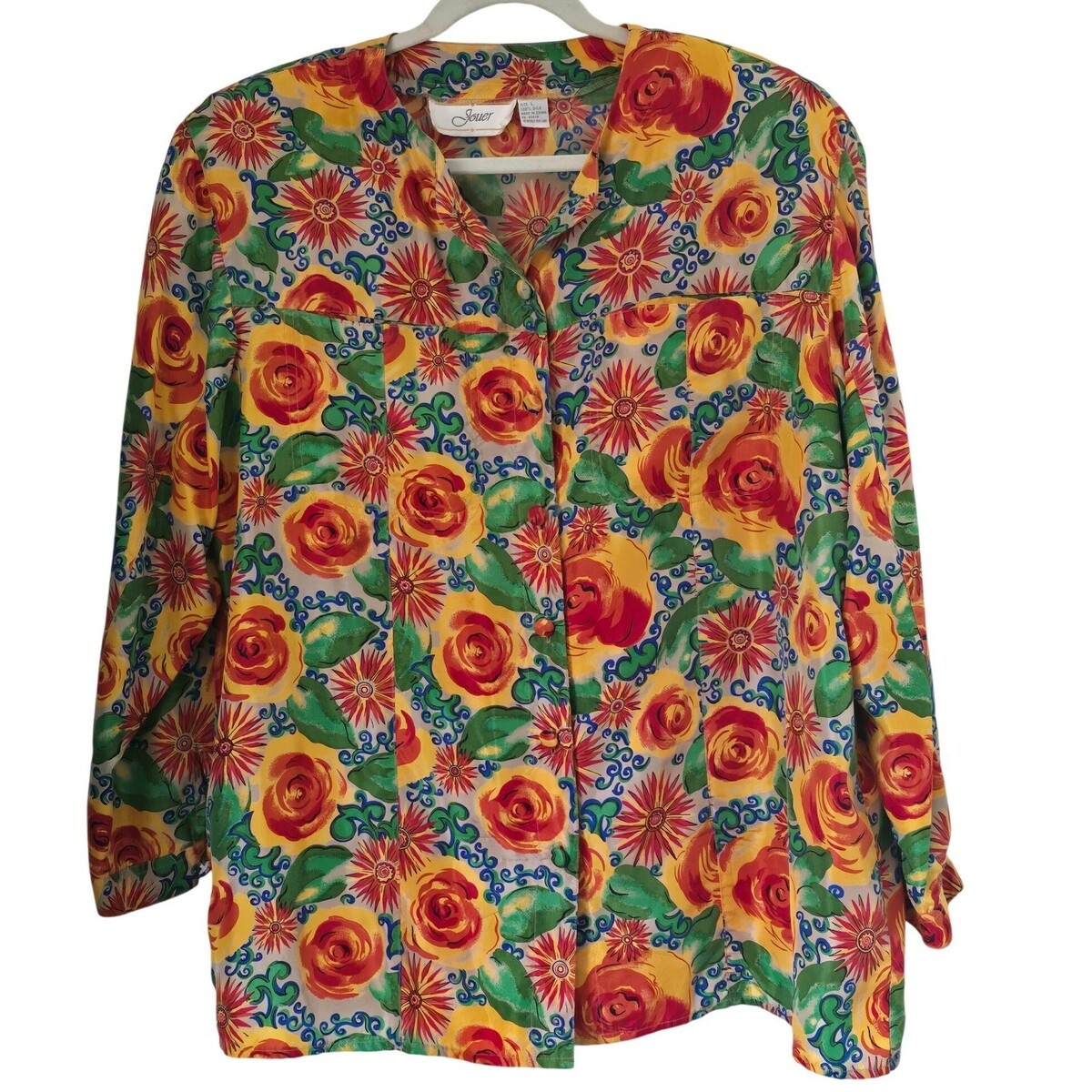 Jouer Vintage 100% Silk Pajama Set L Floral and 49 similar items