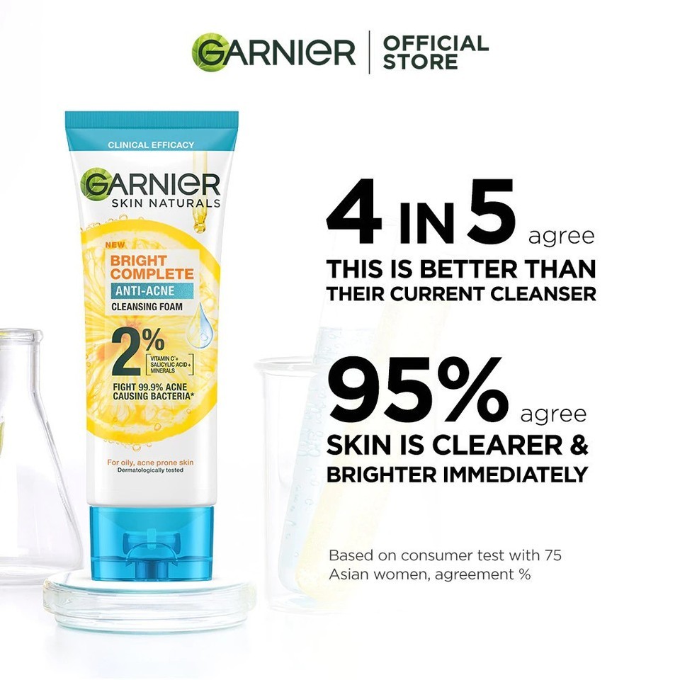 Garnier Bright Complete Anti Acne Face Wash Vit C Salicylic Acid Cleanser 100ML