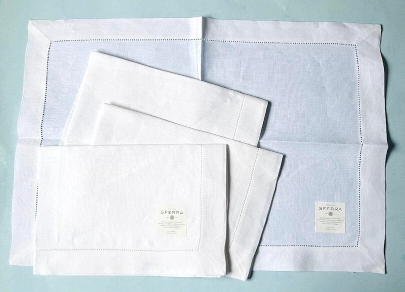 Sferra Classico Oblong White Linen Placemats 13x19" Set of 4 Hemstitched New