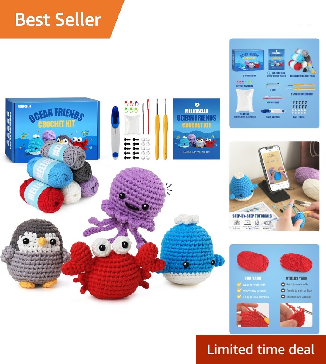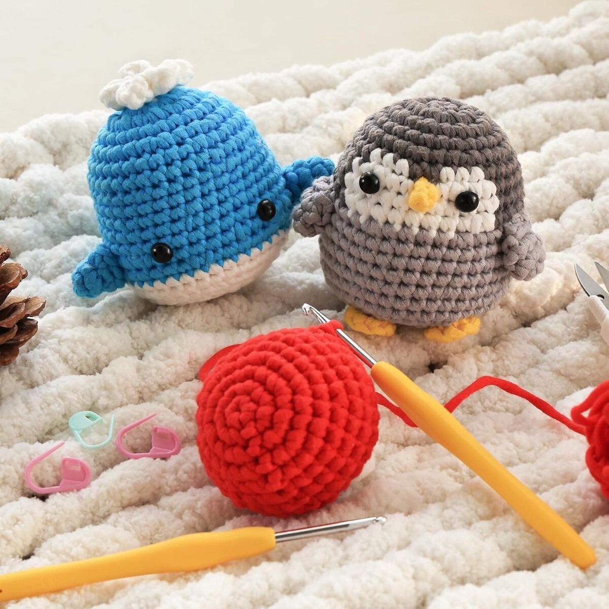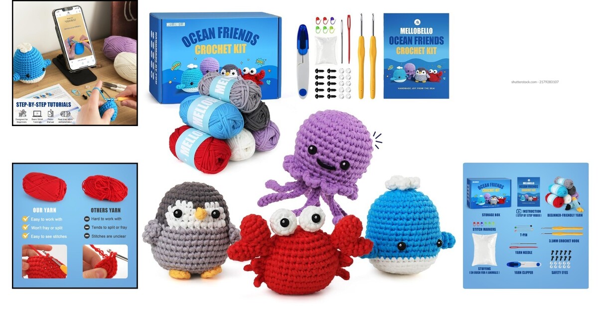 Bring to life adorable characters such as Ollie the Octopus, Will the Whale, Pippa the Penguin, and Clyde the Crab! Use this crochet kit to create your very first crochet doll and join a whimsical ocean family on a delightful adventure.