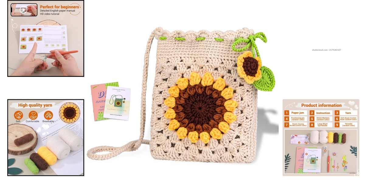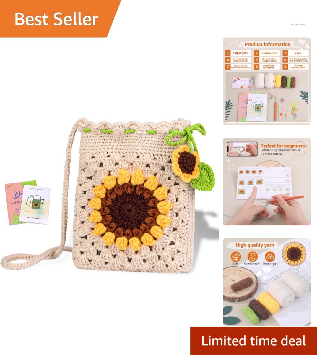Crochet Kit for Beginners - Create a Charming Sunflower Phonebag with Ease