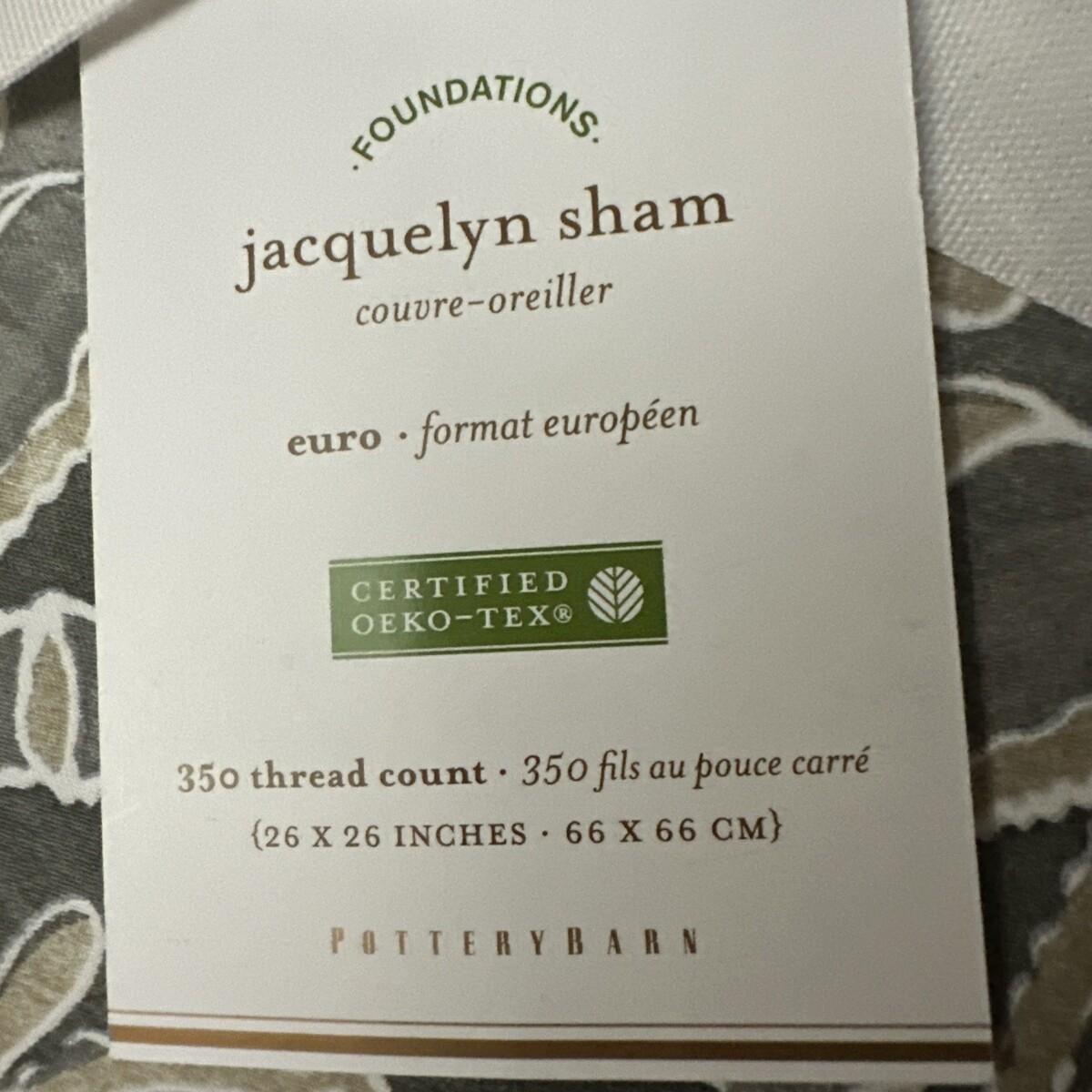 POTTERY BARN JACQUELYN MEDALLION ORGANIC COTTON SATEEN 1pc EURO SHAM BNWT