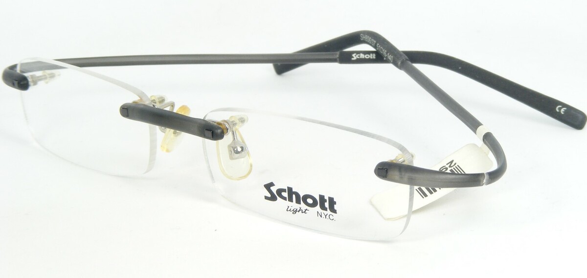 Schott light NYC SH806/37 MATTE GRAY EYEGLASSES GLASSES RIMLESS 51-16-140mm. (G252) Includes: Non-Branded hard case, cloth pouch bag and cleaning cloth. Actual photos of these glasses. This is exactly what you will receive. Style and comfort in everyday use. A pair of glasses is not just an accessory; it provides the first hint of an individual?s personality. The wearer must enjoy a frame and feel that it is completely consistent with his or her look and mindset. A great pair of glasses, with all its detail and complexity must above all be an extension of the individual. Returns are always FREE for any reason. If you don't like it, simply click "Item no longer needed". Item should be returned within 60 days as UNUSED in original packaging. If you have any questions please feel free to c